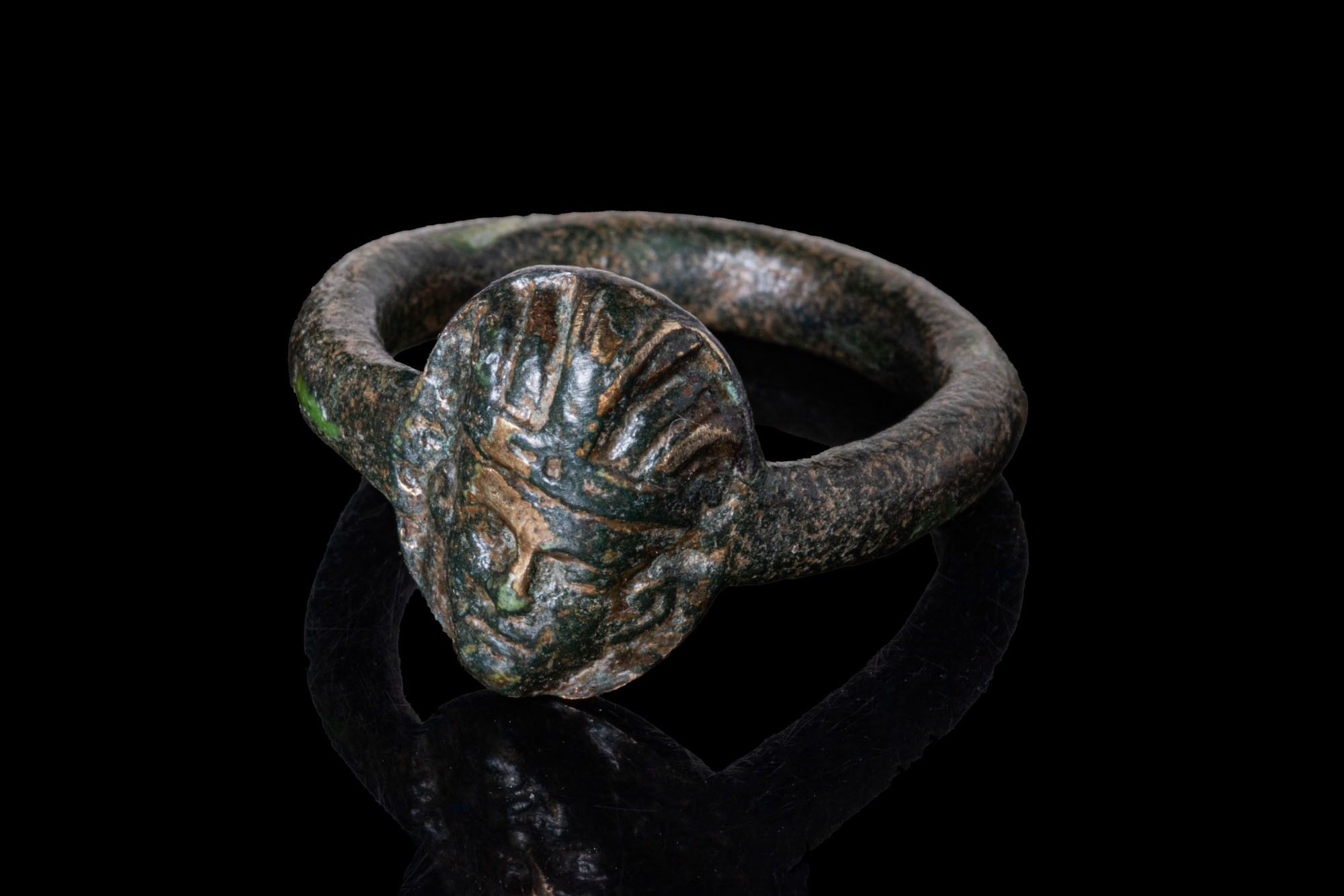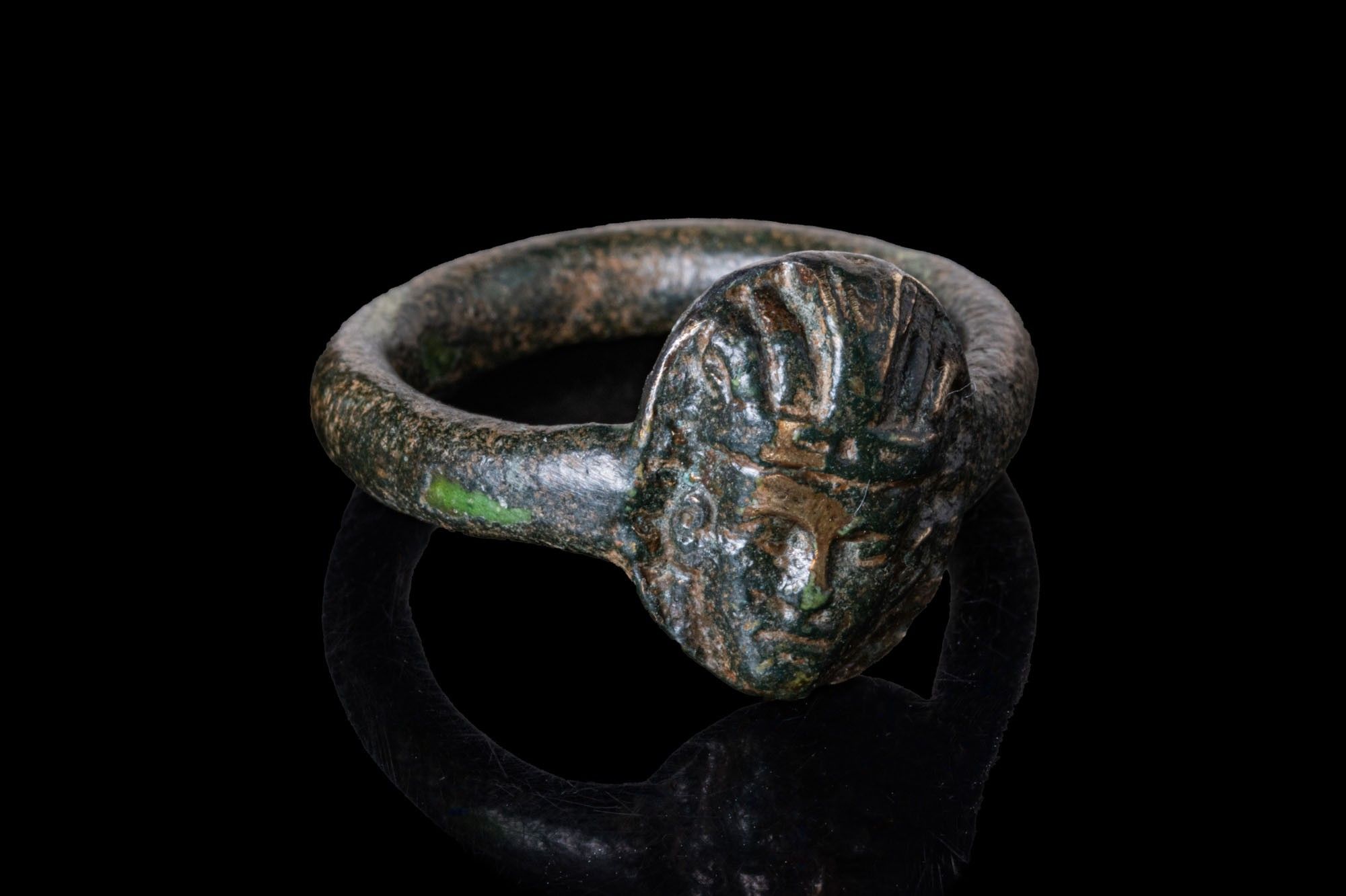 ROMANO-EGYPTIAN BRONZE RING WITH HEAD OF PHARAOH.