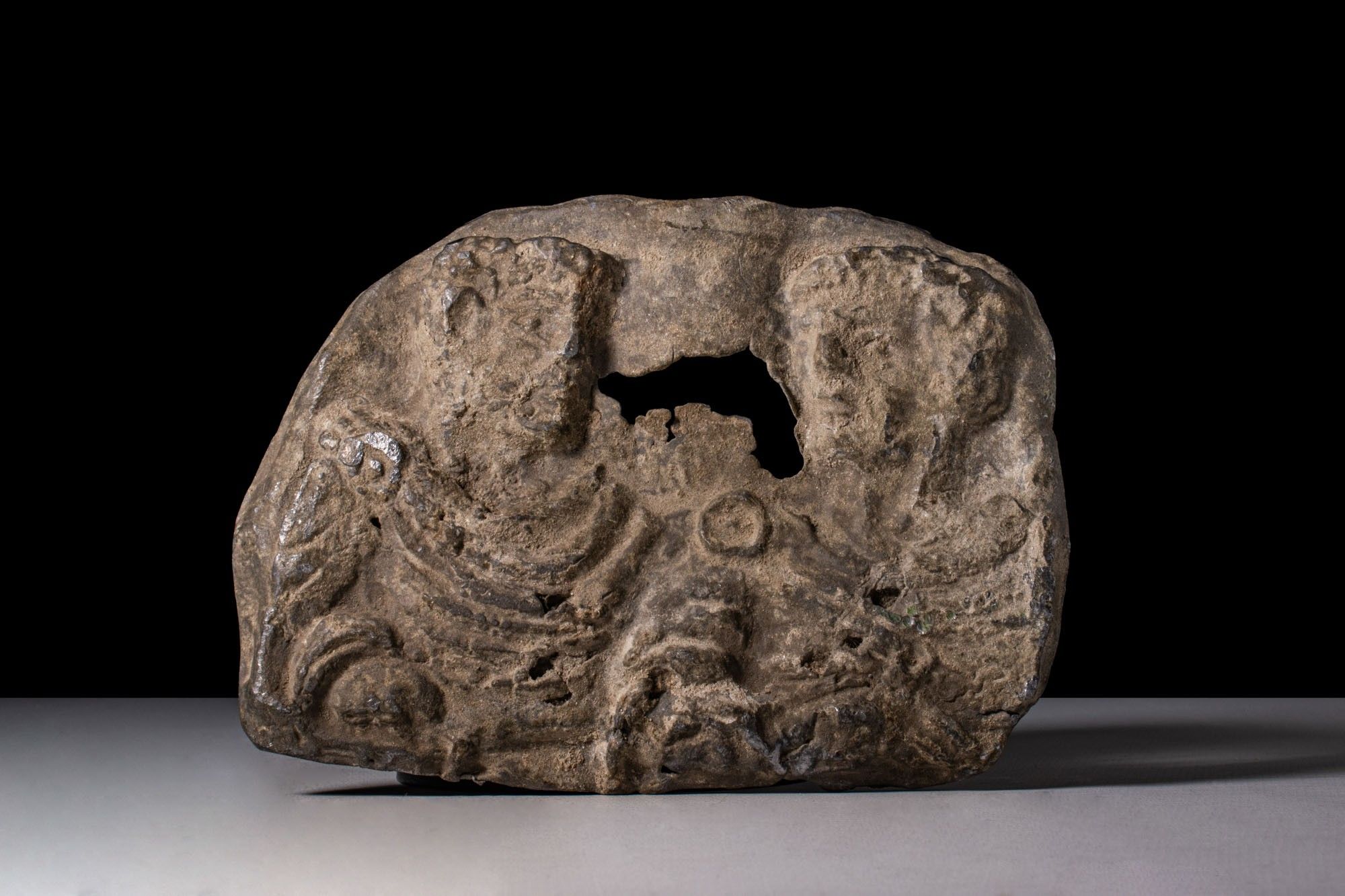 ROMAN LEAD SARCOPHAGUS PLAQUE DEPICTING TWO EMPERORS. Ca. AD…