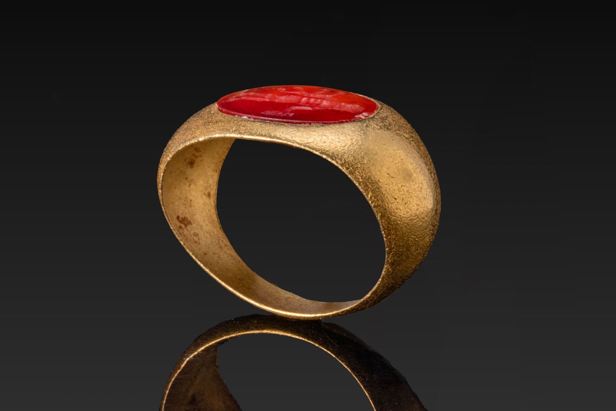 Premium ROMAN REPUBBLIC GOLD RING WITH CARNELIAN INTAGLIO DEPICTING …