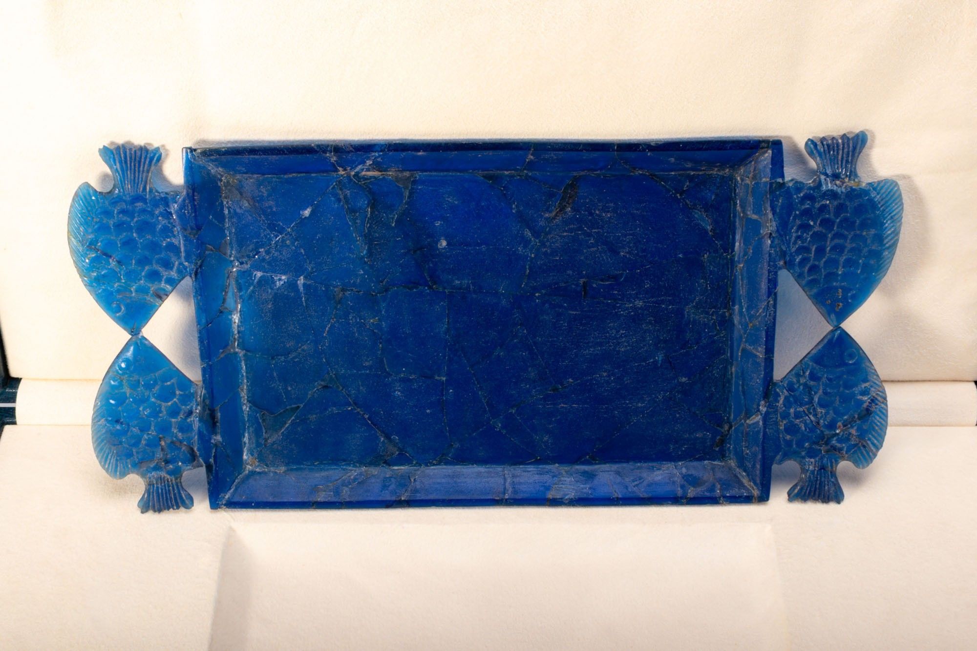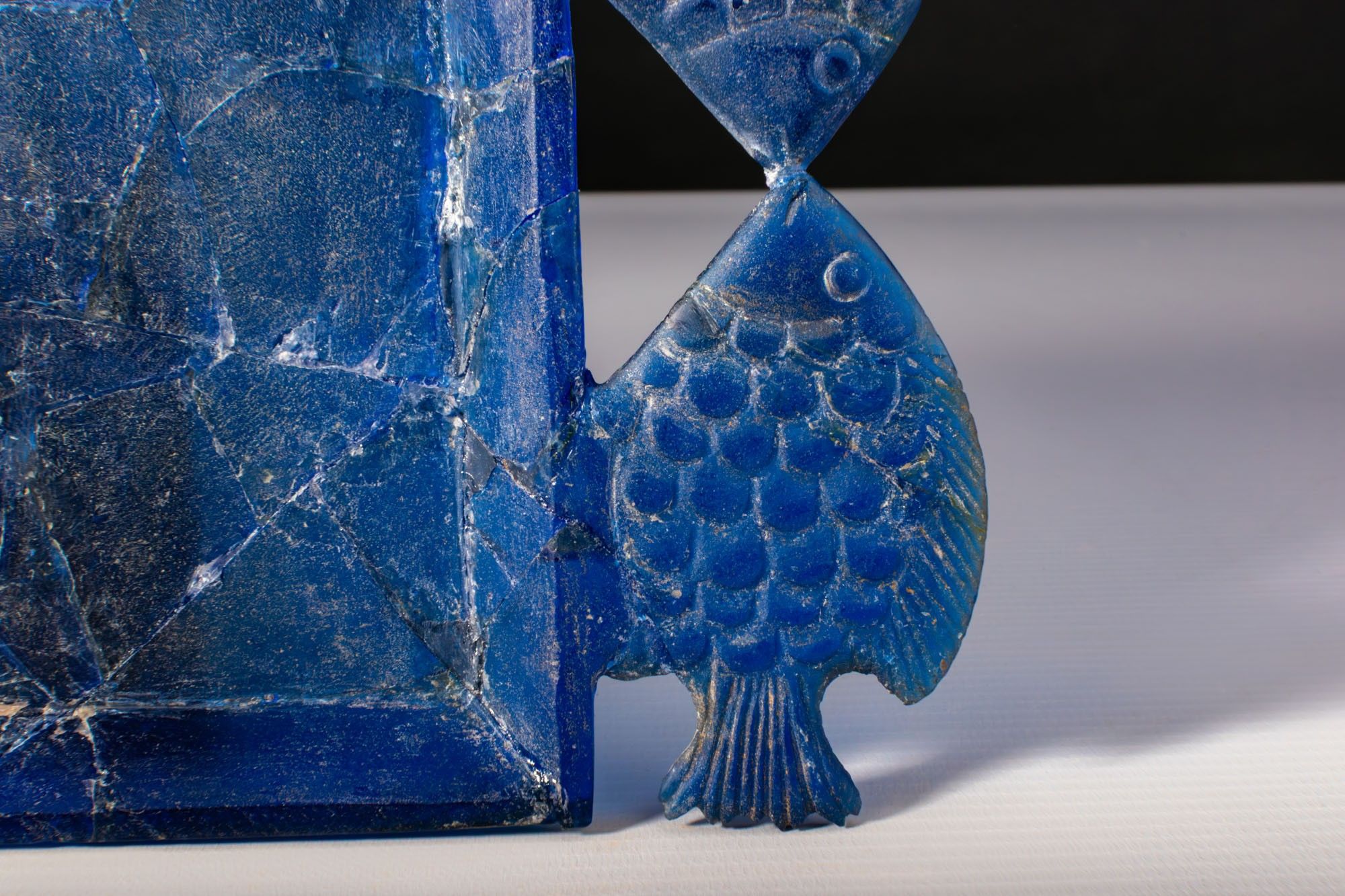 Premium RARE ROMANO-EGYPTIAN BLUE GLASS TRAY WITH FISH.
