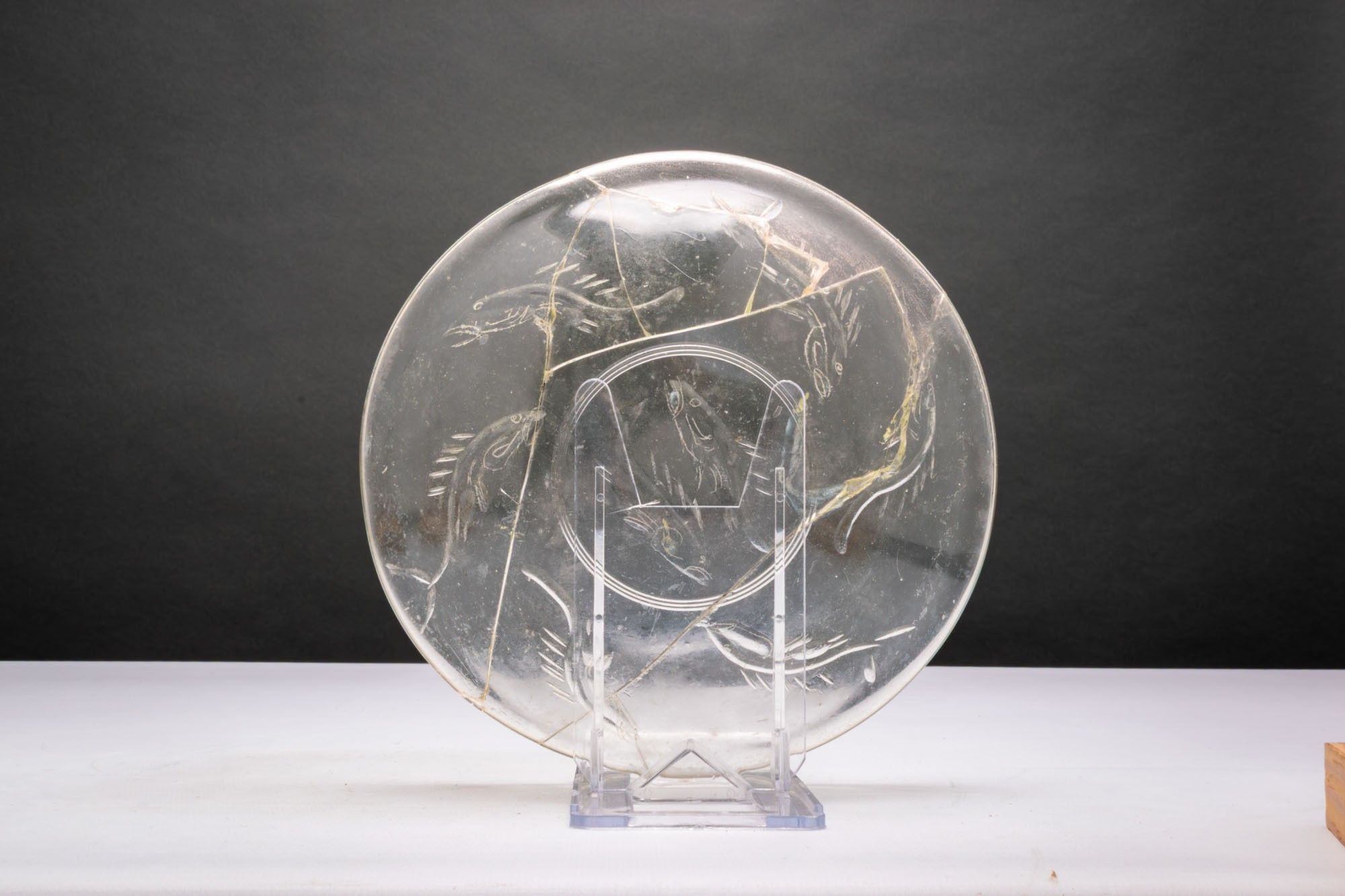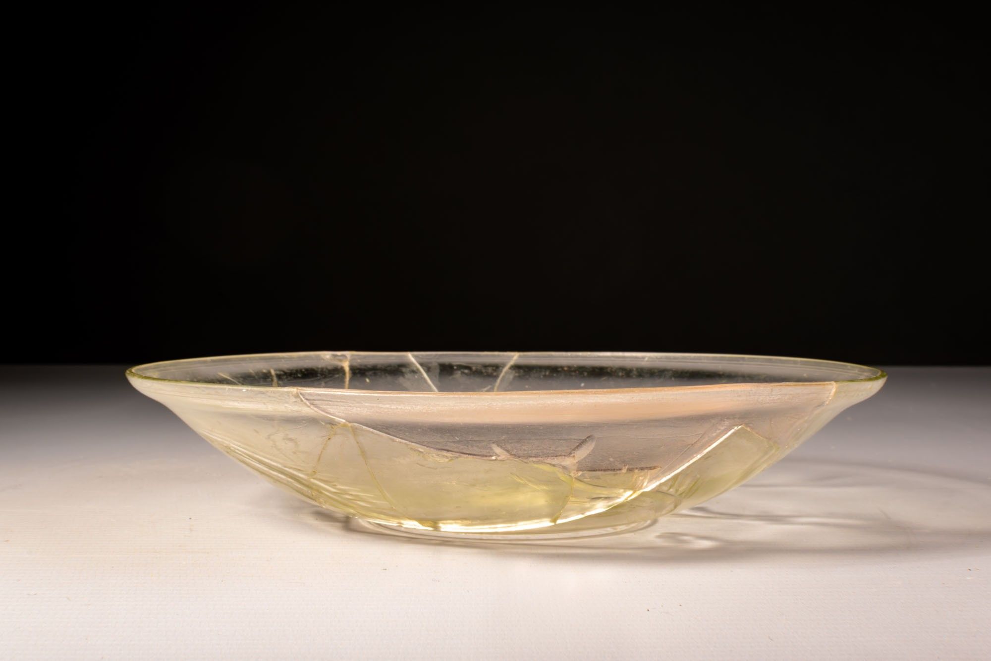 AMAZING ROMAN TRANSPARENT GLASS DISH WITH FISH MOTIF. Ca. AD…