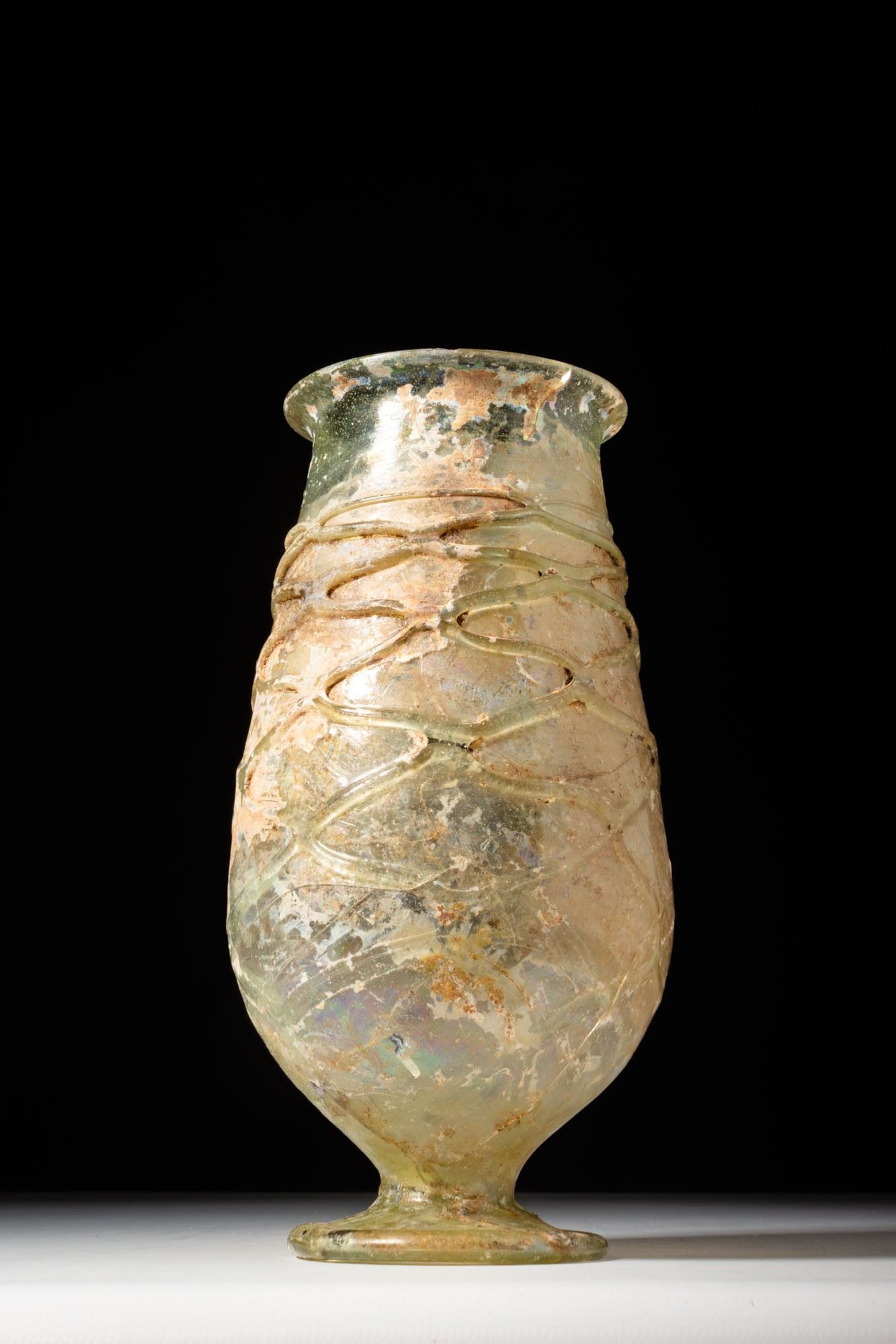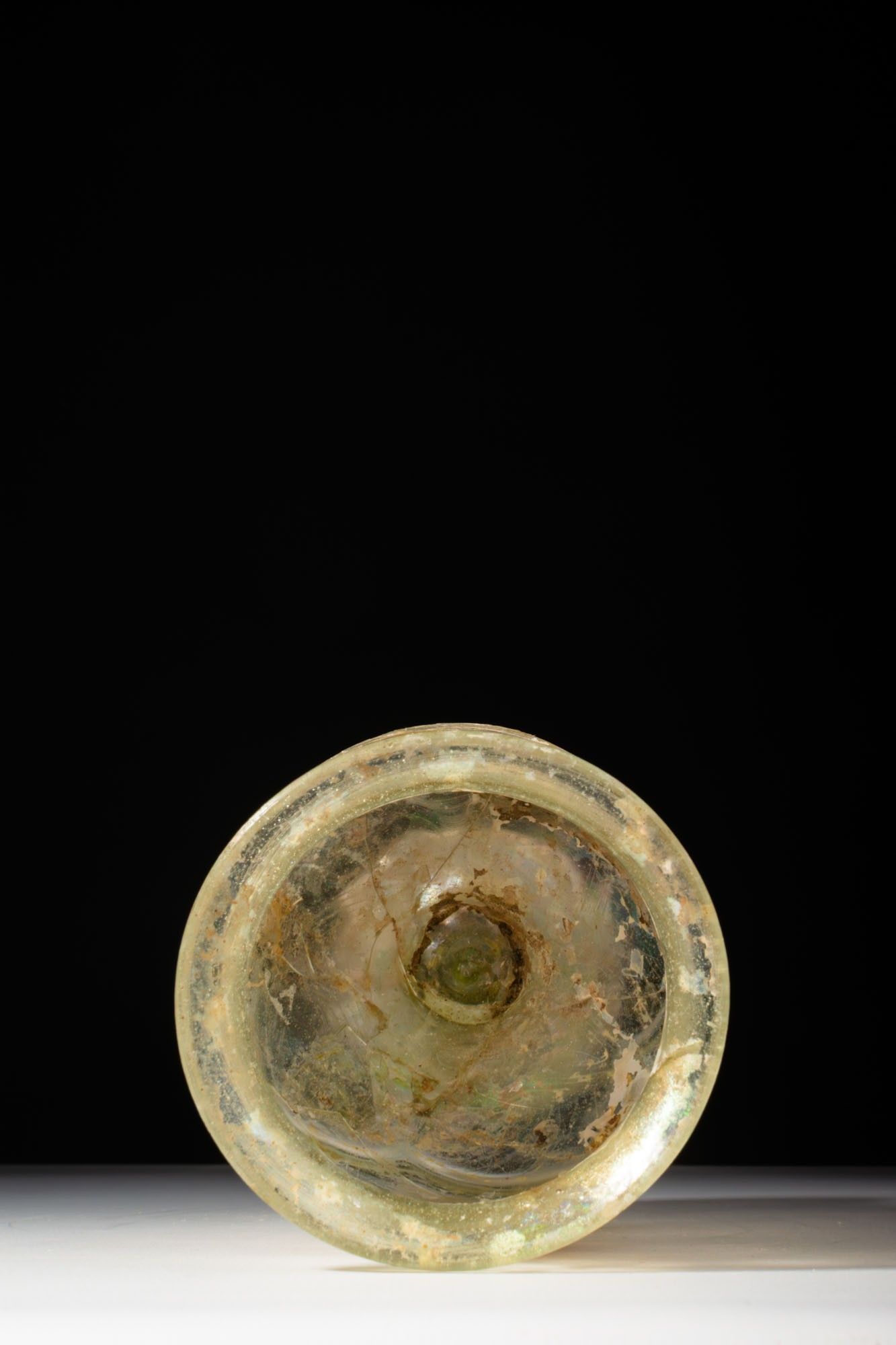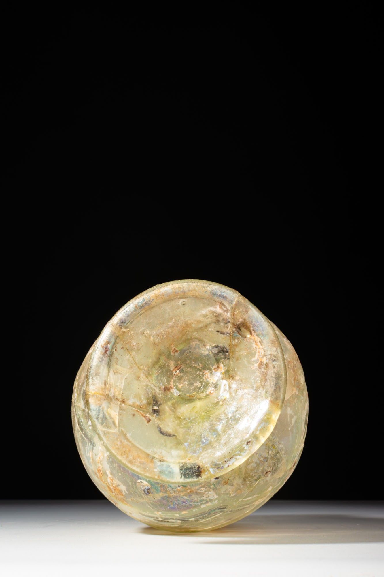 Premium ROMAN GLASS BEAKER. Ca. AD 300 - 400. A translucent pale gre…