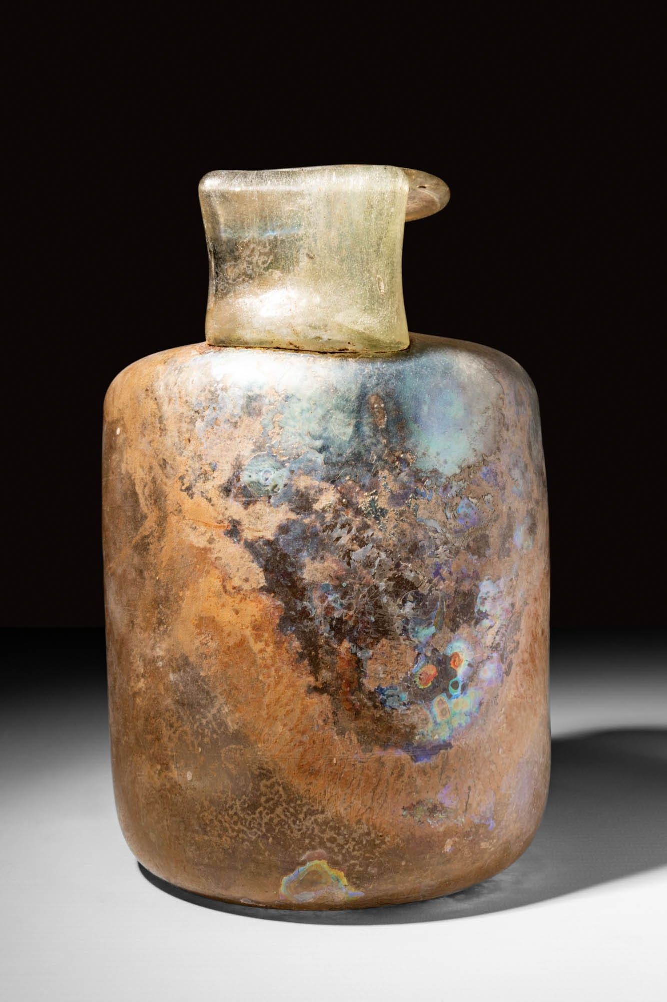 Premium HUGE LATE ROMAN GLASS BOTTLE. Ca. AD 300 - 500 . A large gla…