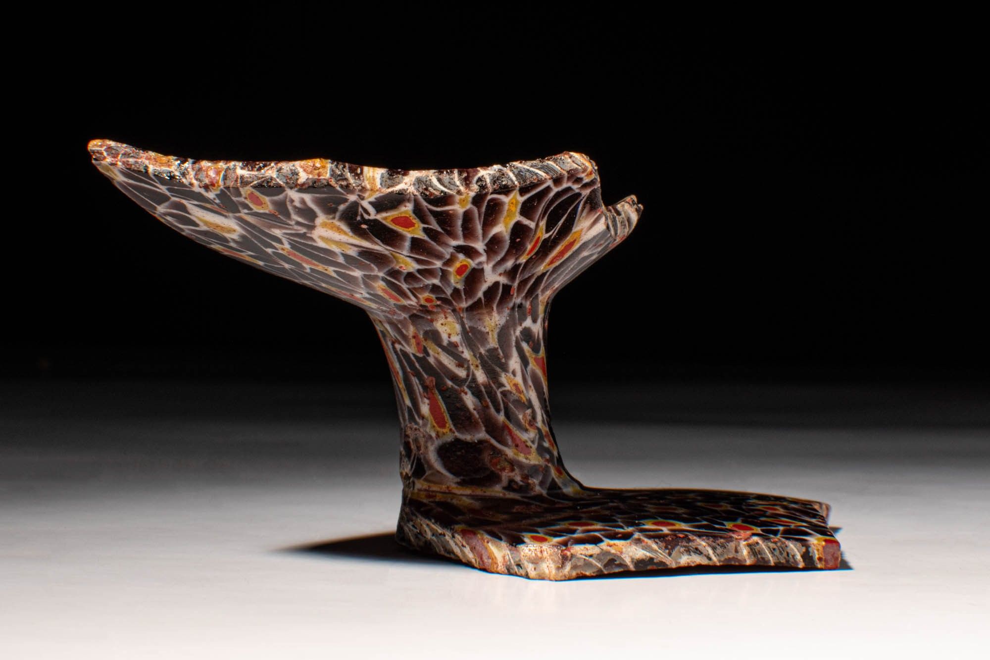Ca. 100 BC - AD 100. A fragment of a millefiori glass vase, cup, or footed bowl with portions of the foot, handle, and base still present. For similar see: The Smithsonian American Art Museum, Accession Number: 1929.8.147.5. Size: 35mm x 90mm; Weight: 55g Provenance: Prince collection, 1990s-2014; Ex. Private collection 1970s-1990s. This item has been cleared against the Art Loss Register database and comes with a confirmation letter.