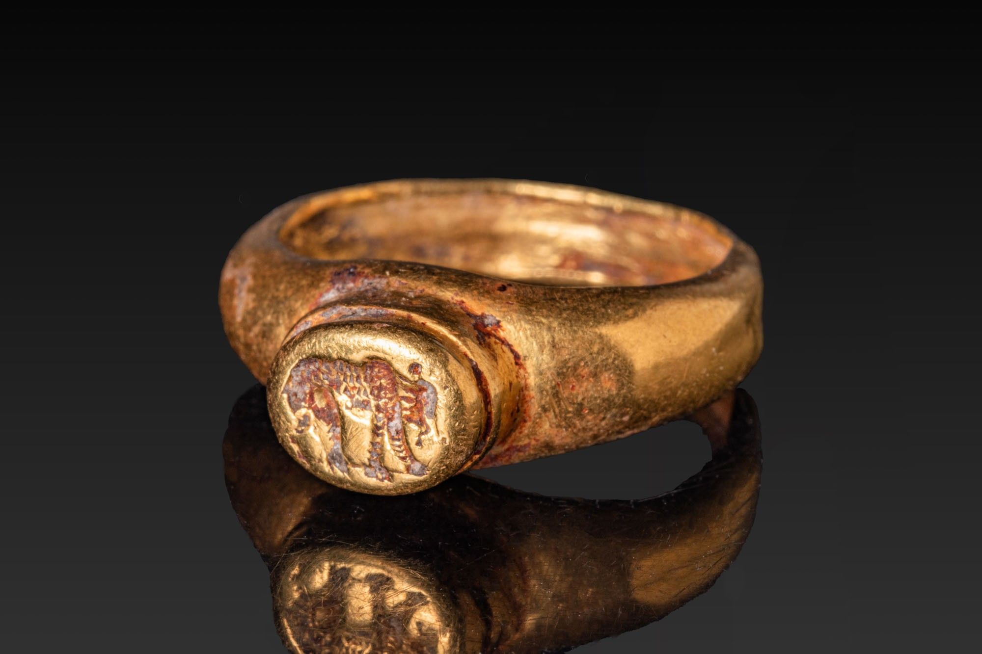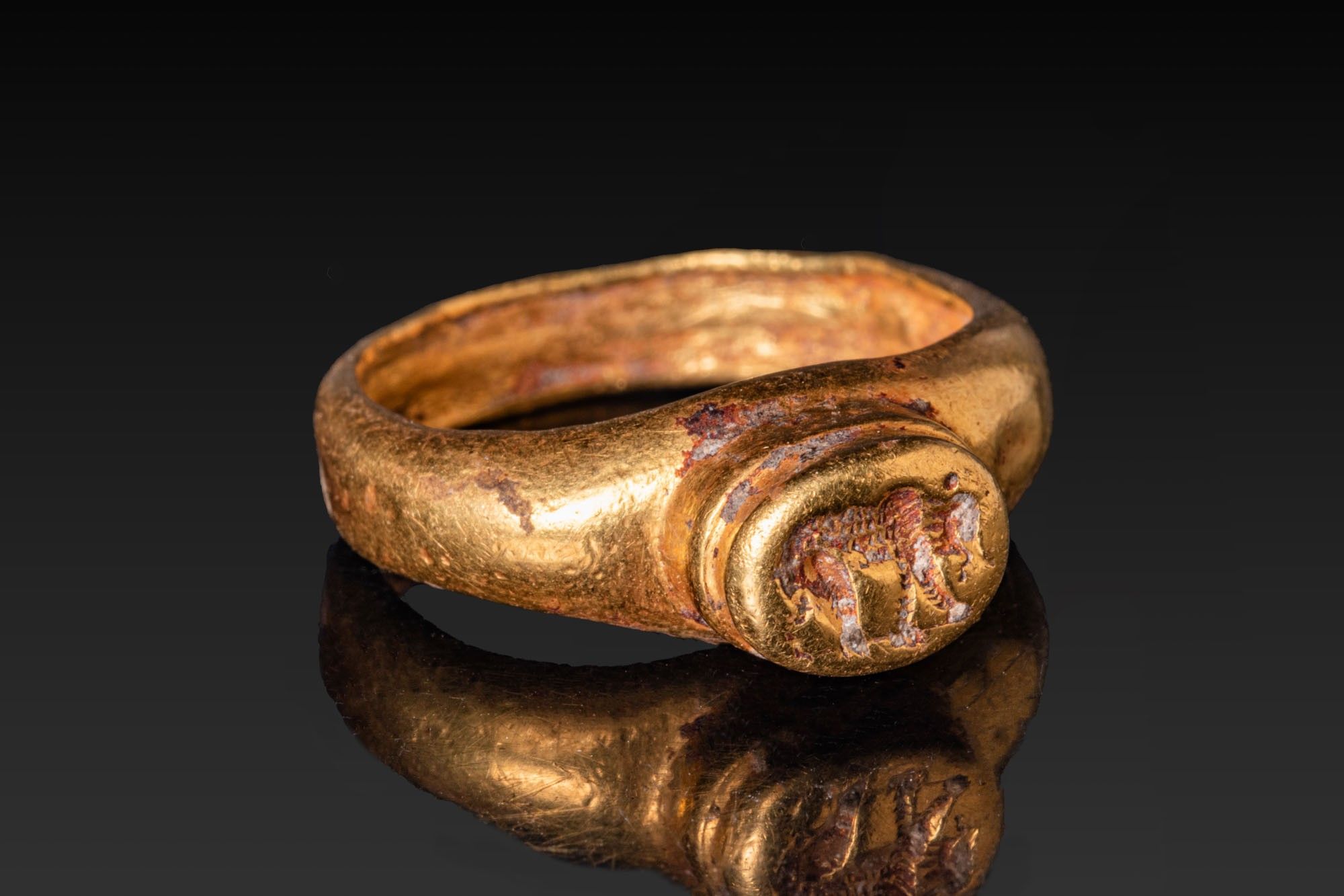 Premium ROMAN HIGH KARAT GOLD LEGIONARY RING WITH BEAR. Ca. AD 1 - 3…