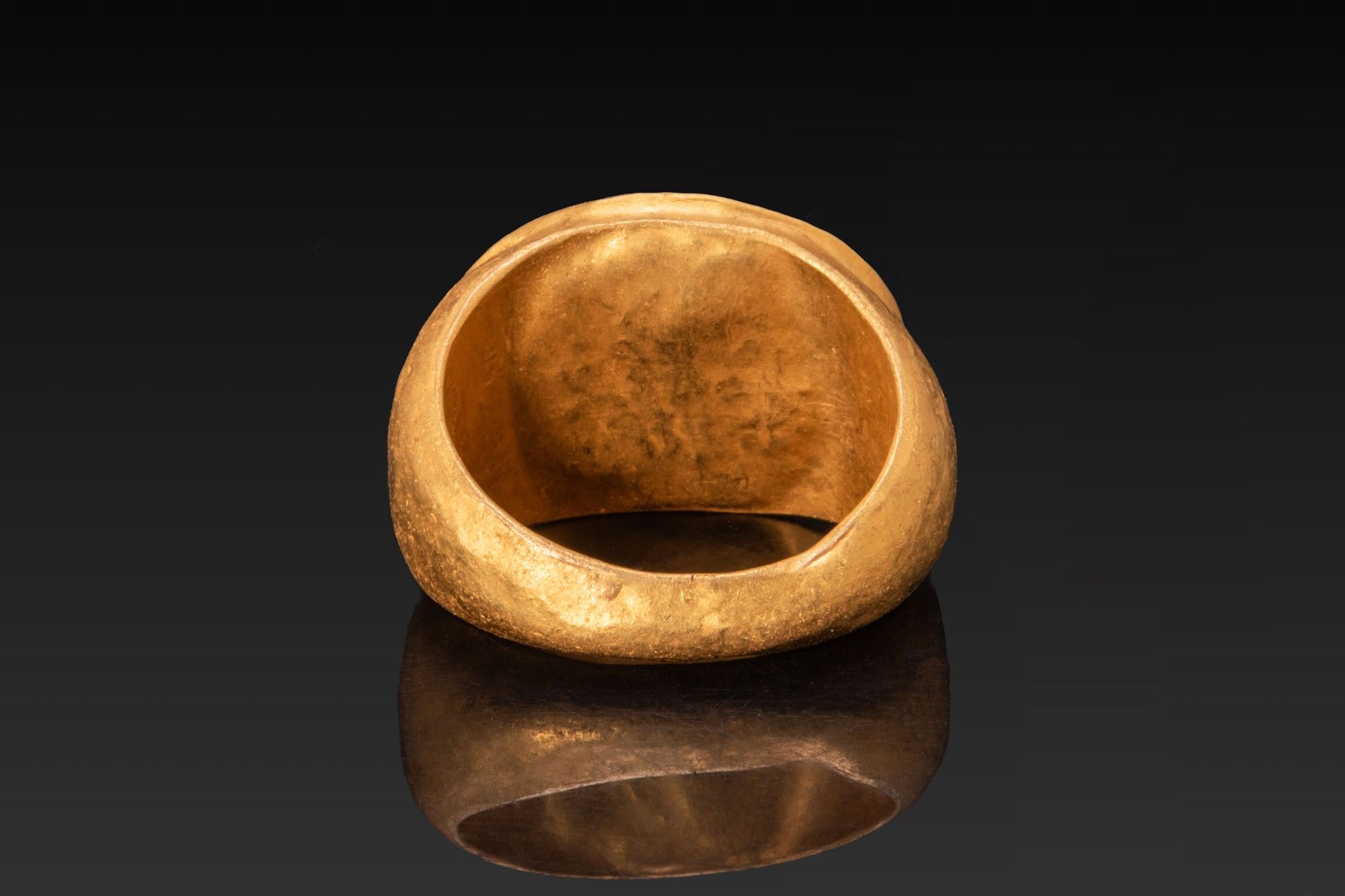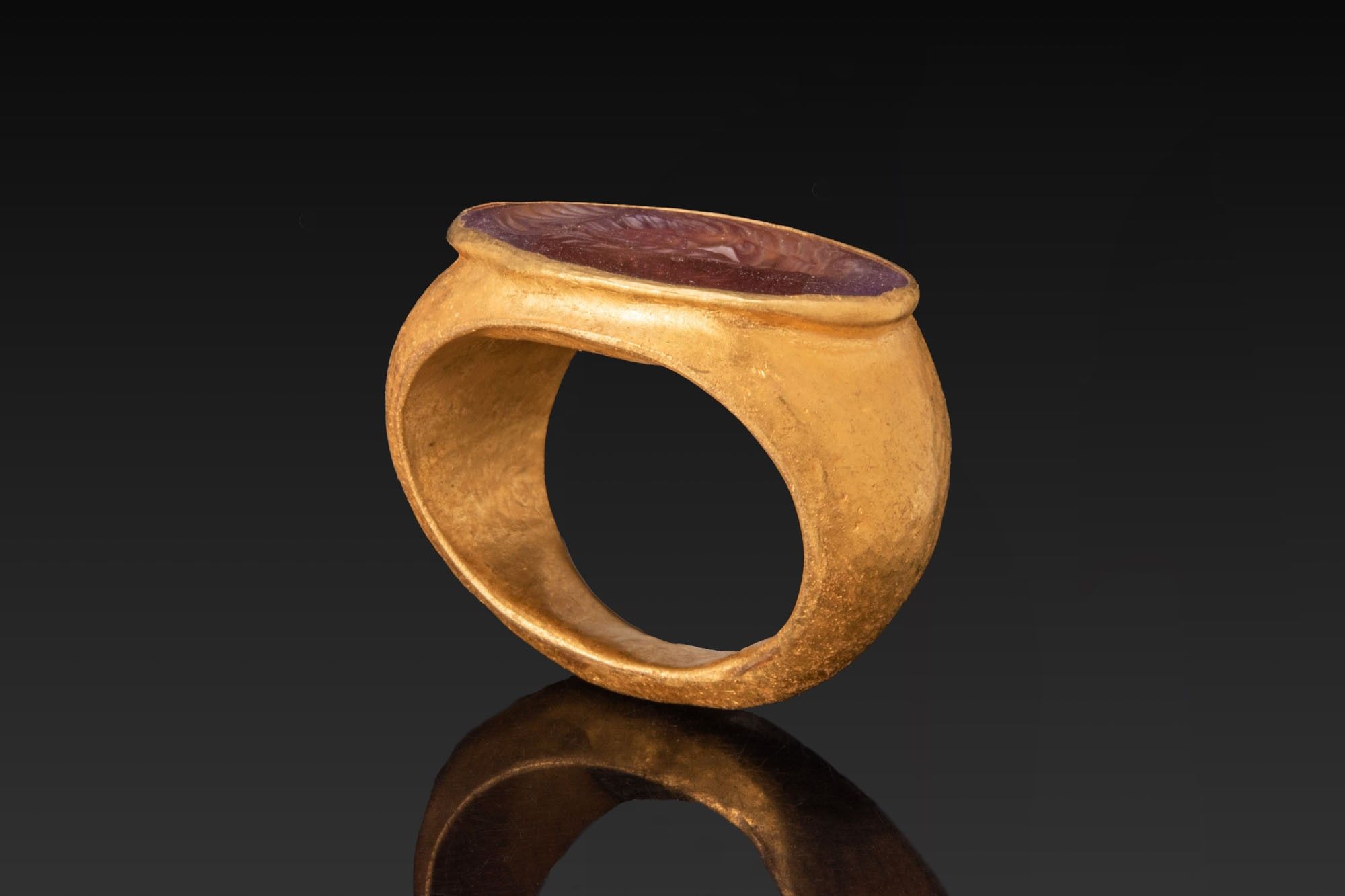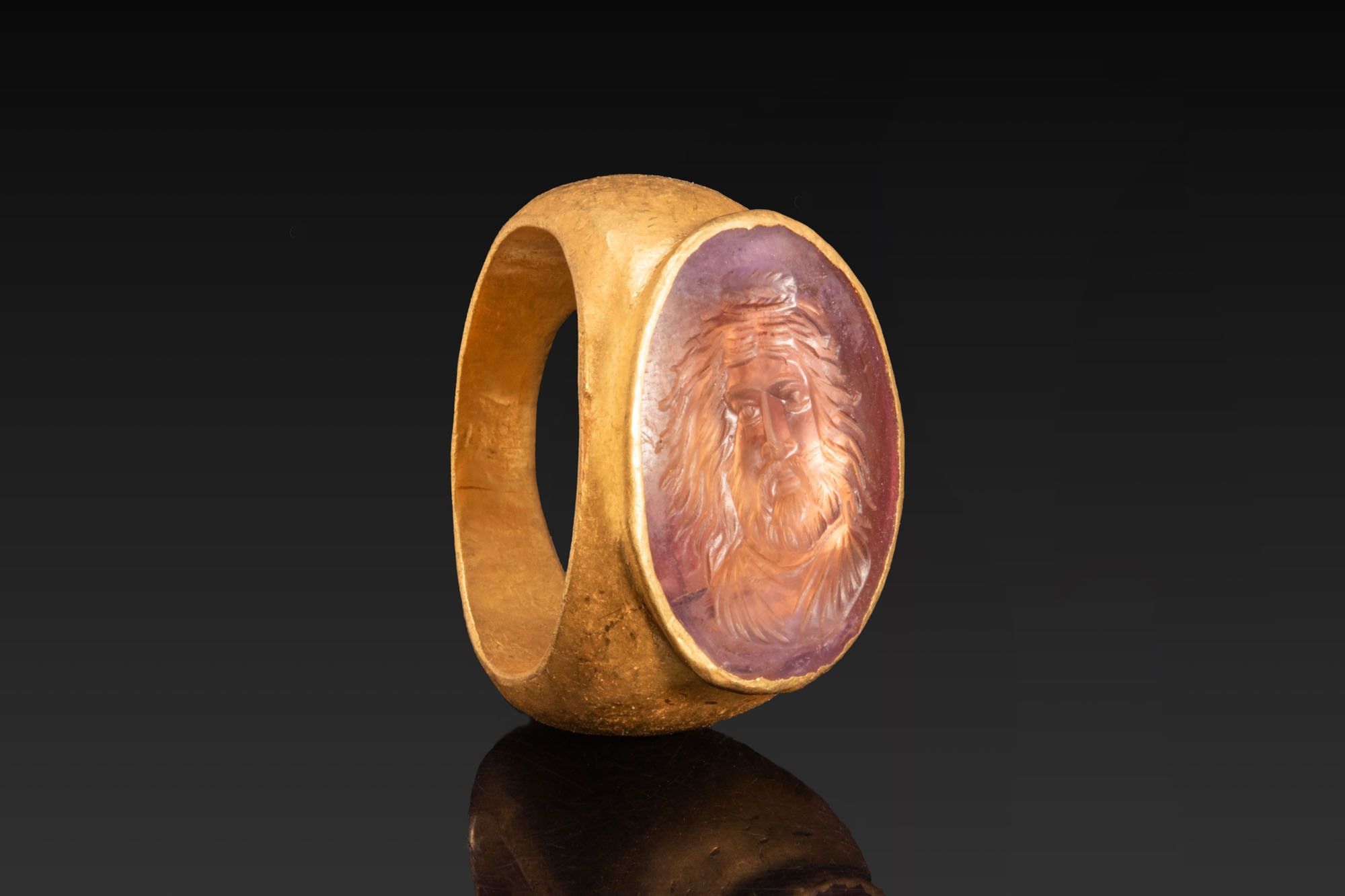 Premium LARGE ROMAN GOLD RING WITH AMETHYST INTAGLIO DEPICTING SERAP…