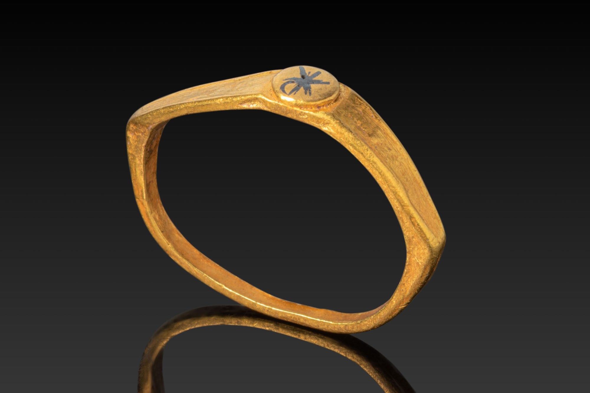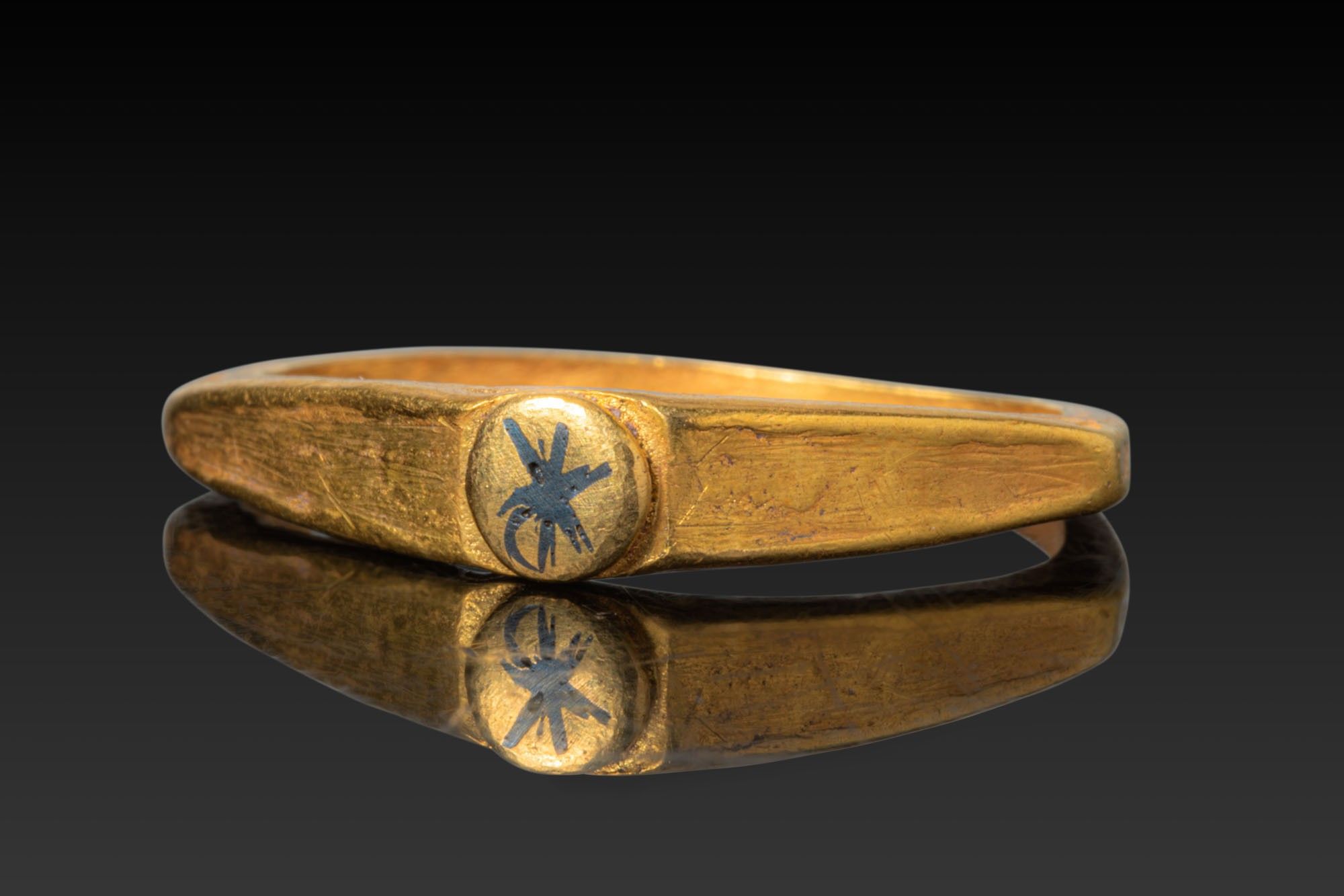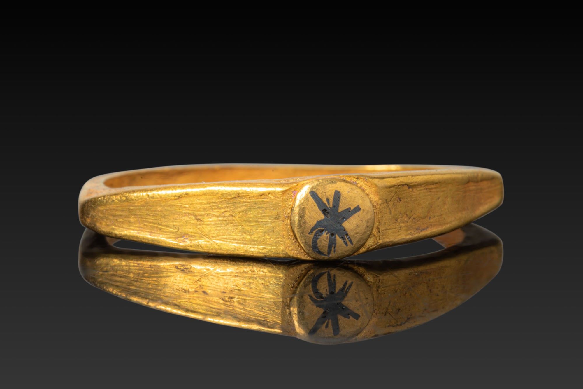 Premium LATE ROMAN GOLD RING WITH NIELLO CHI-RHO MONOGRAM. Ca. AD 30…