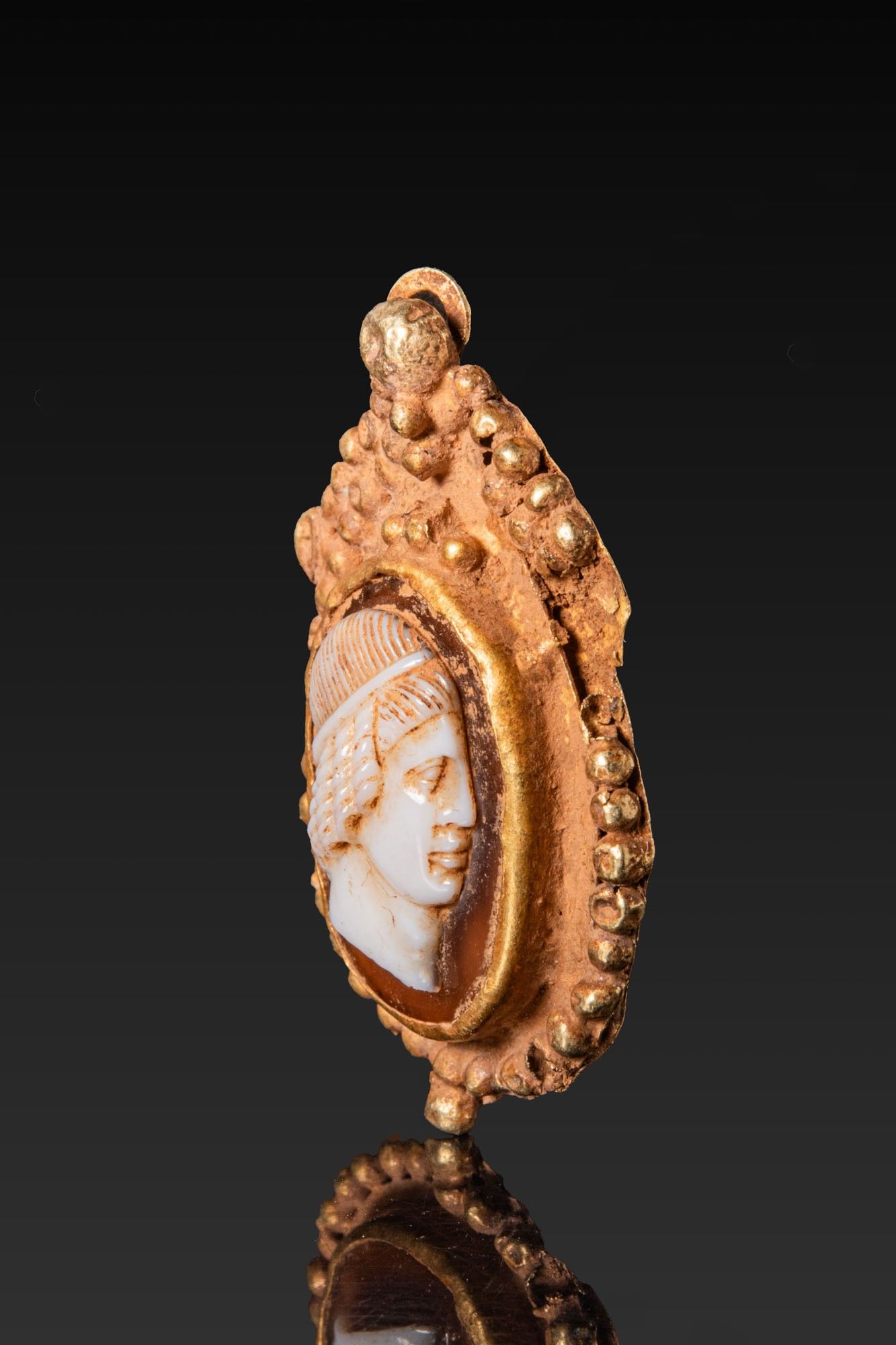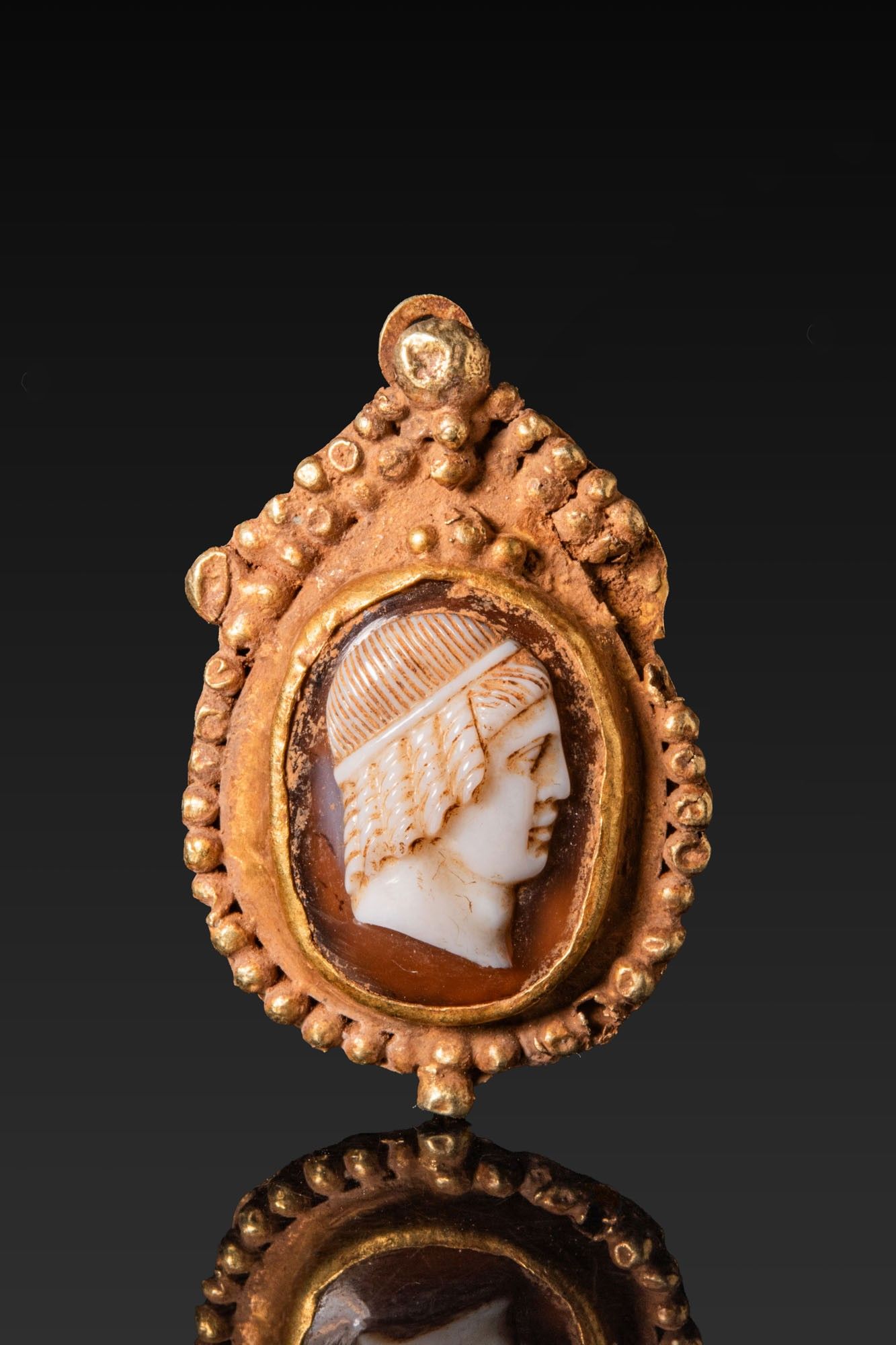 Premium ROMAN GOLD PENDANT WITH AGATE CAMEO DEPICTING ANTINOUS. Ca. …