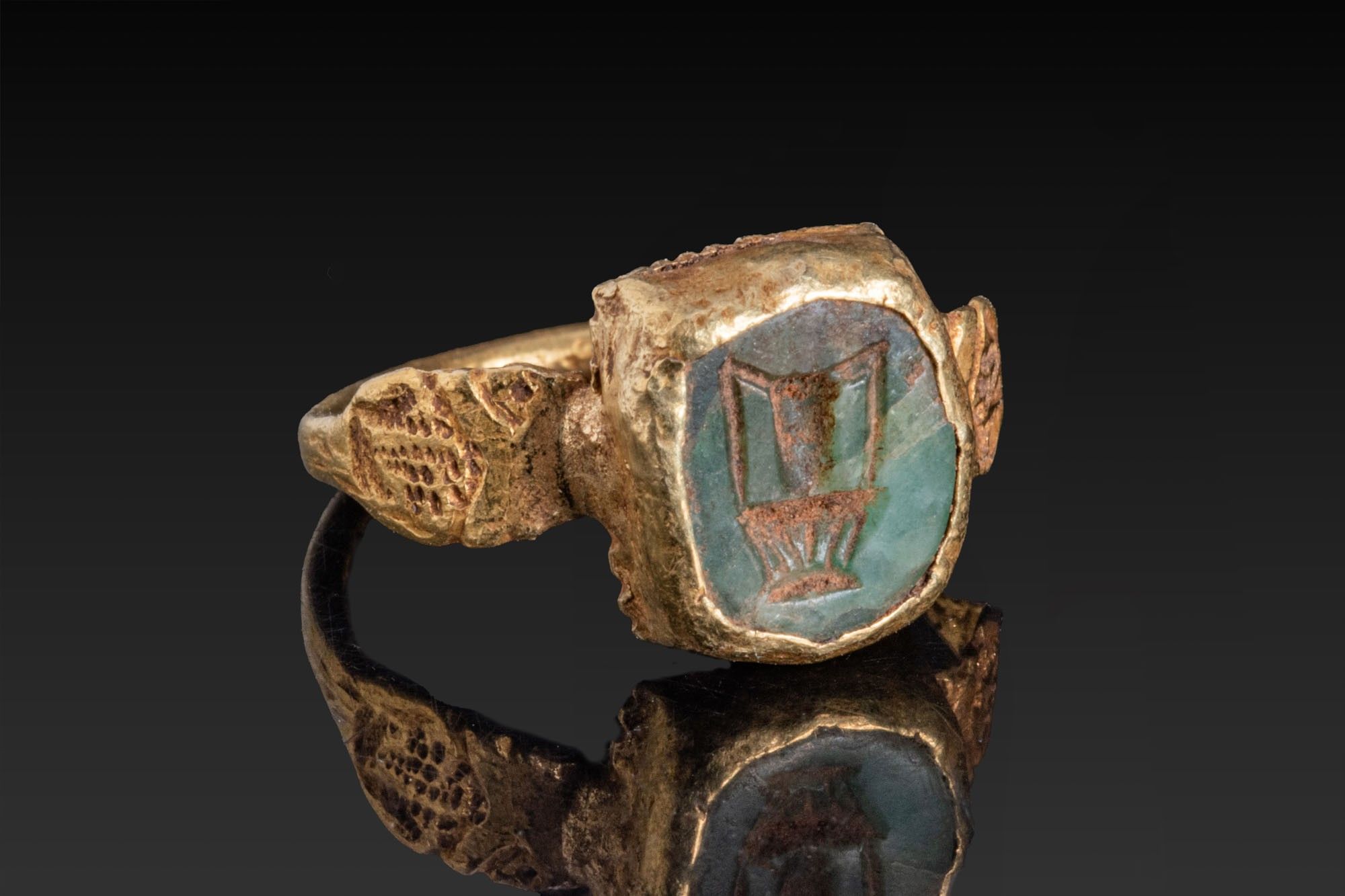 Premium ROMAN GOLD INTAGLIO RING DEPICTING AN AMPHORA. Ca. AD 1 - 30…