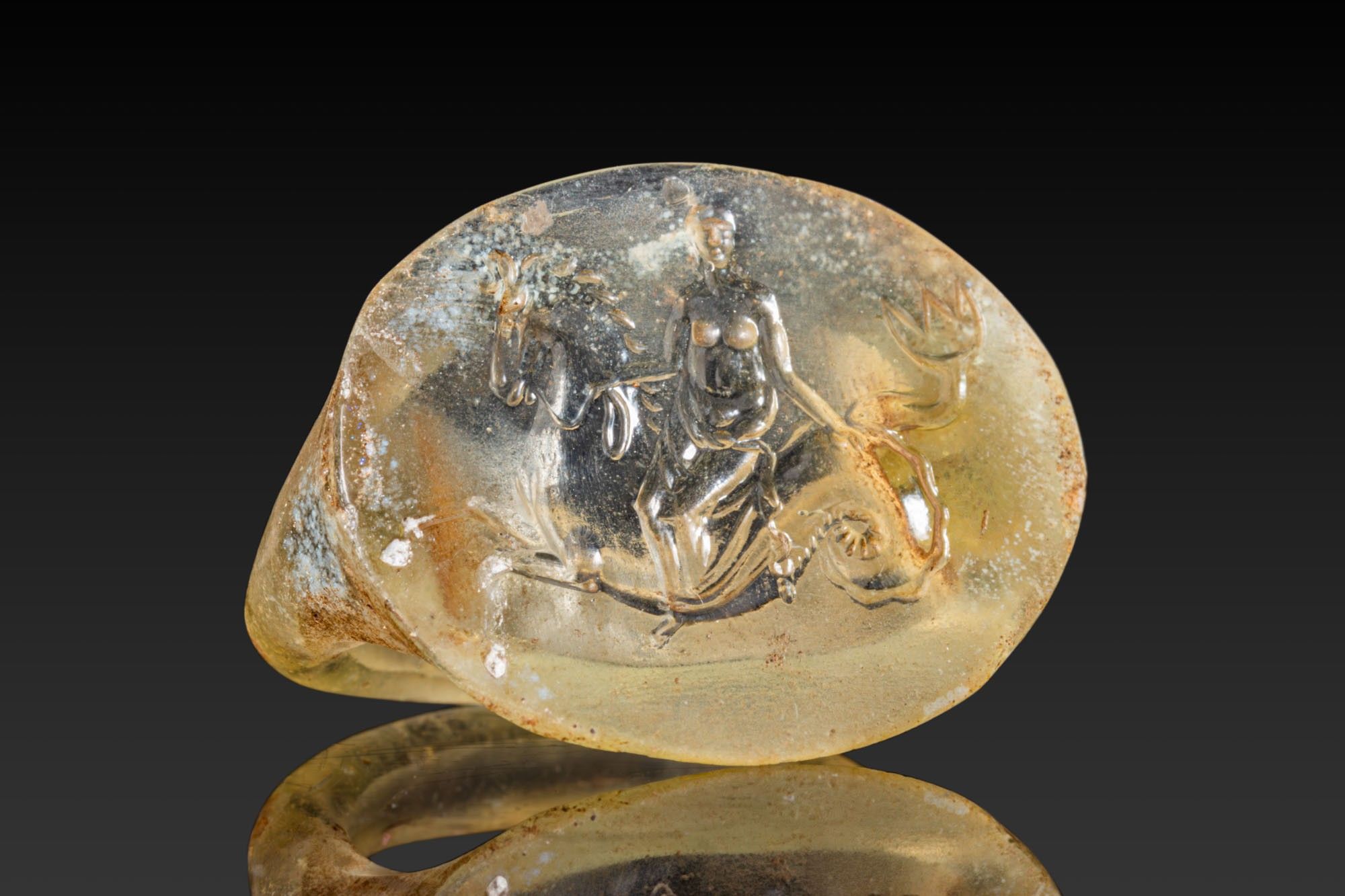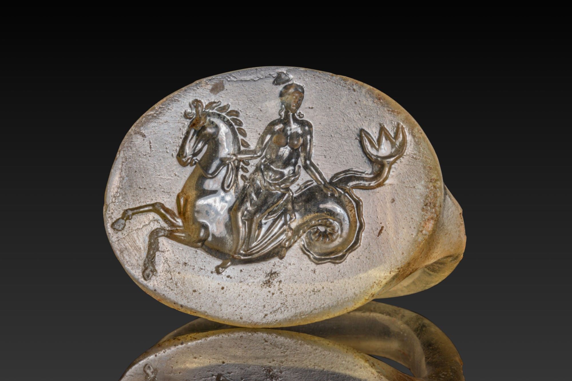 Premium STUNNING ROMAN GLASS RING DEPICTING NEREID RIDING SEAHORSE. …