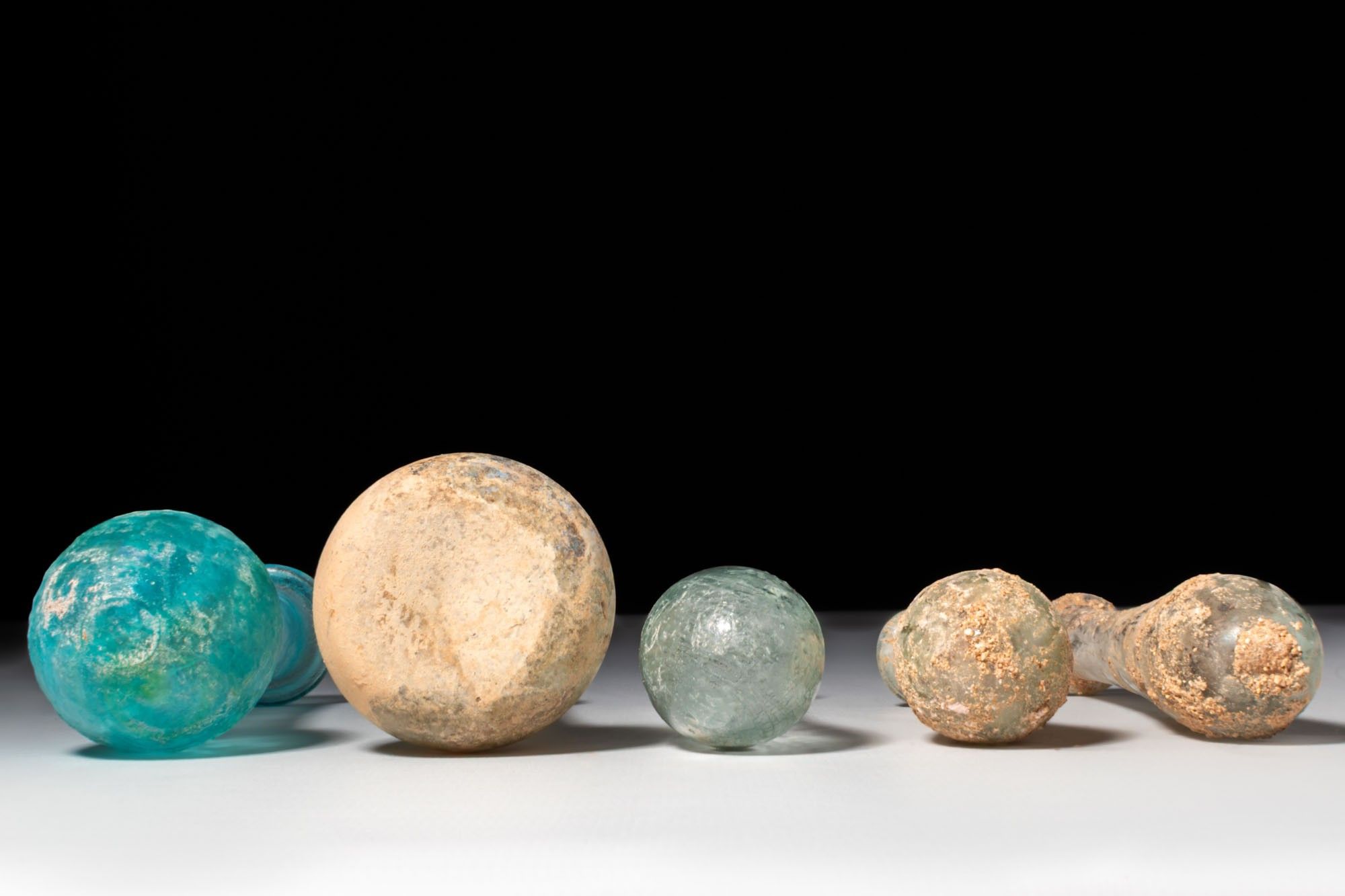COLLECTION OF ROMAN GLASS UNGUENTARIA. Ca. AD 1 - 200. A col…
