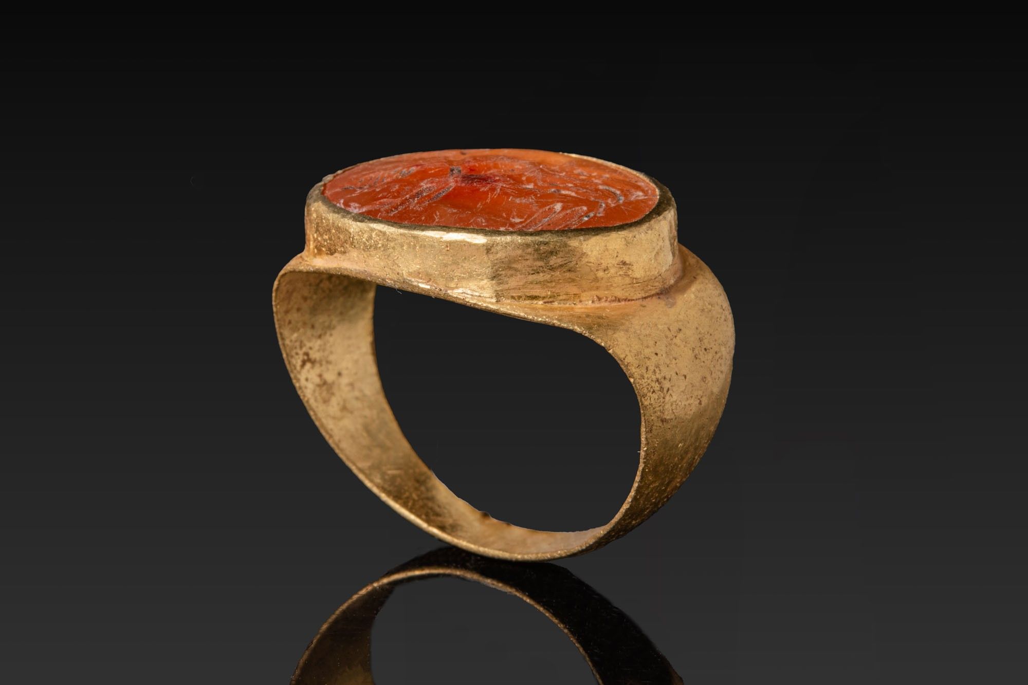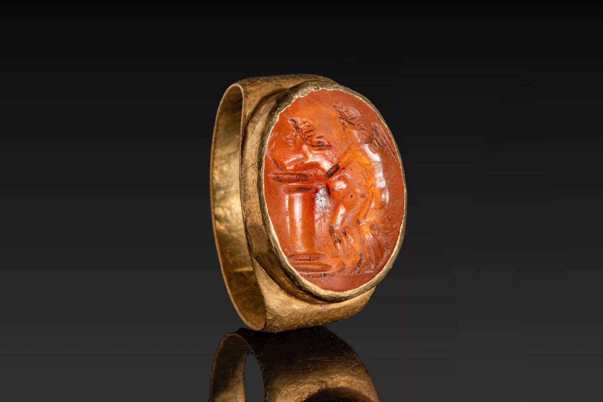 Premium ROMAN CARNELIAN INTAGLIO WITH EROTIC SCENE IN GOLD RING. Ca.…