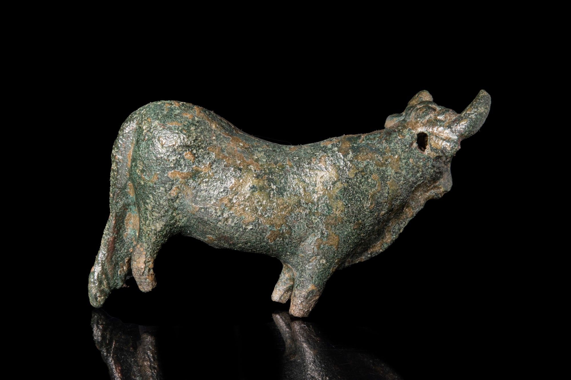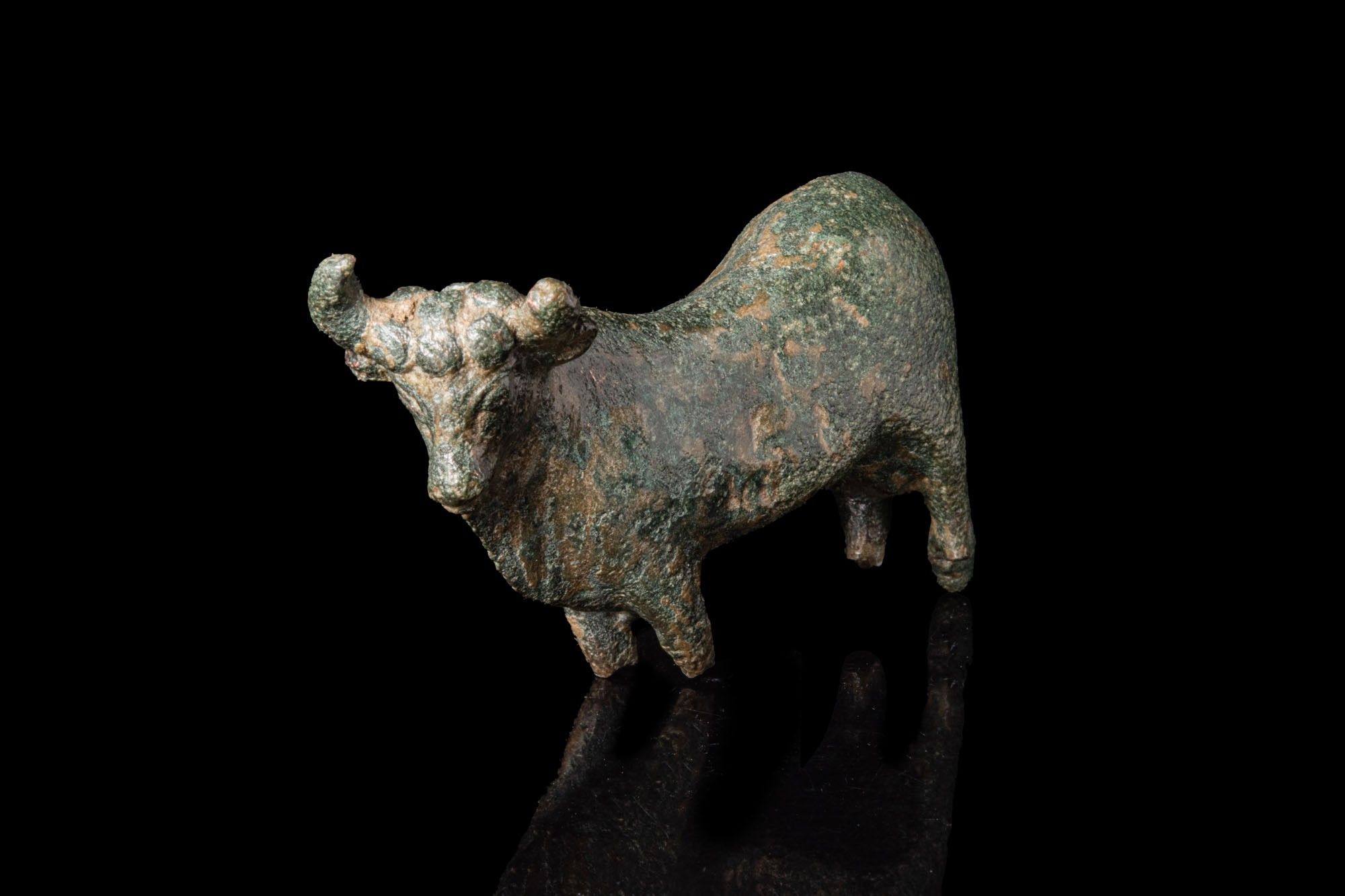ROMAN BRONZE BULL FIGURINE. Ca. AD 1 - 300. A cast bronze fi…