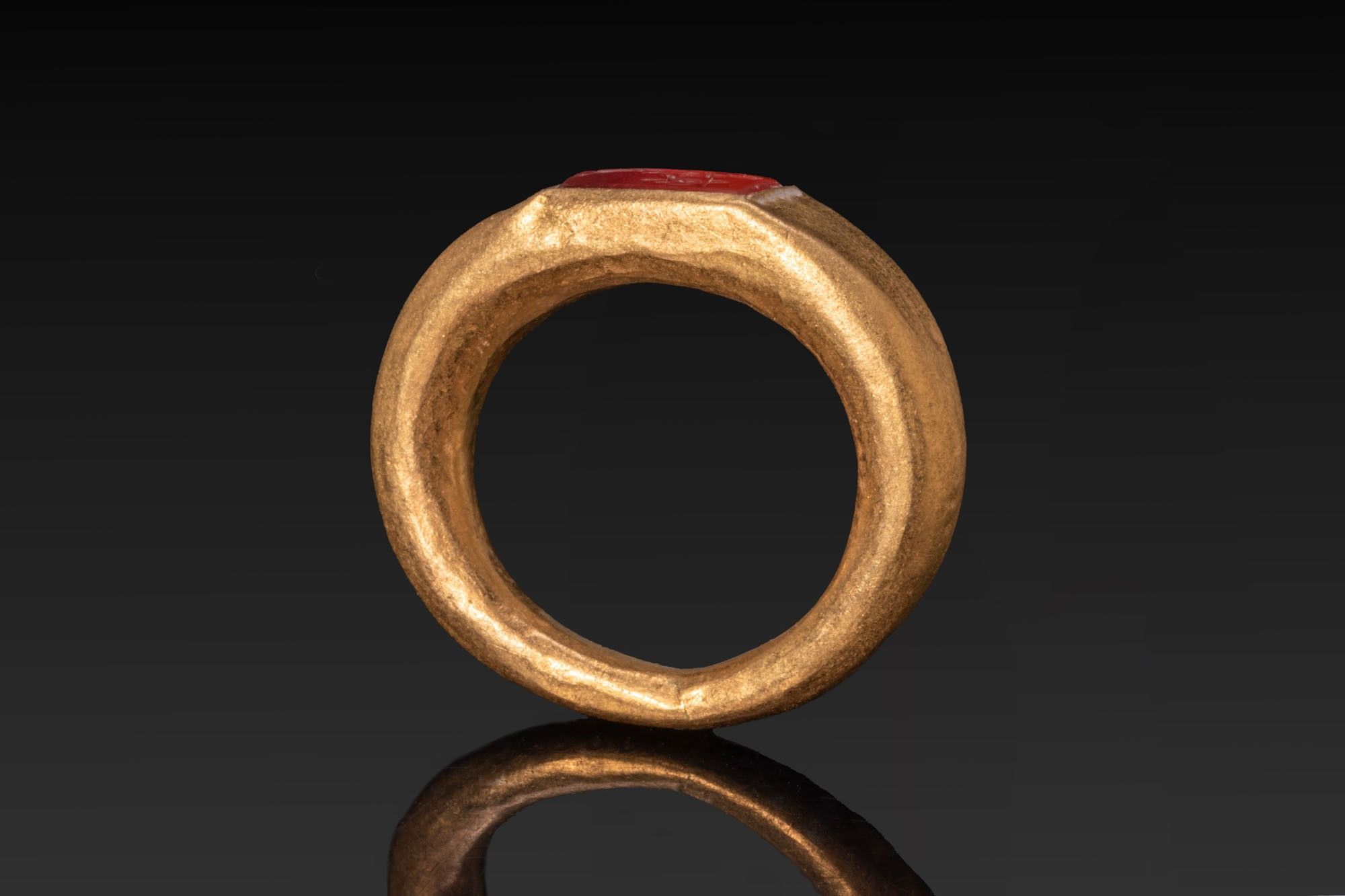 ROMAN CARNELIAN INTAGLIO DEPICTING FORTUNA IN GOLD RING. Ca.…