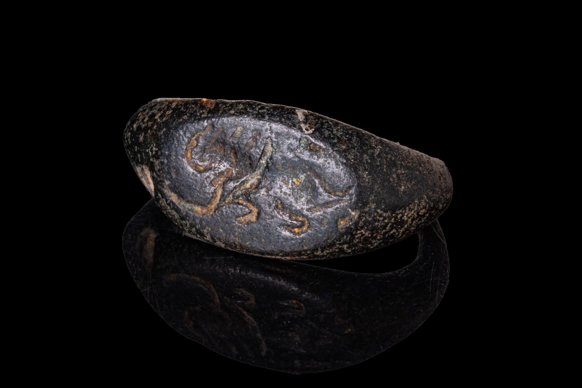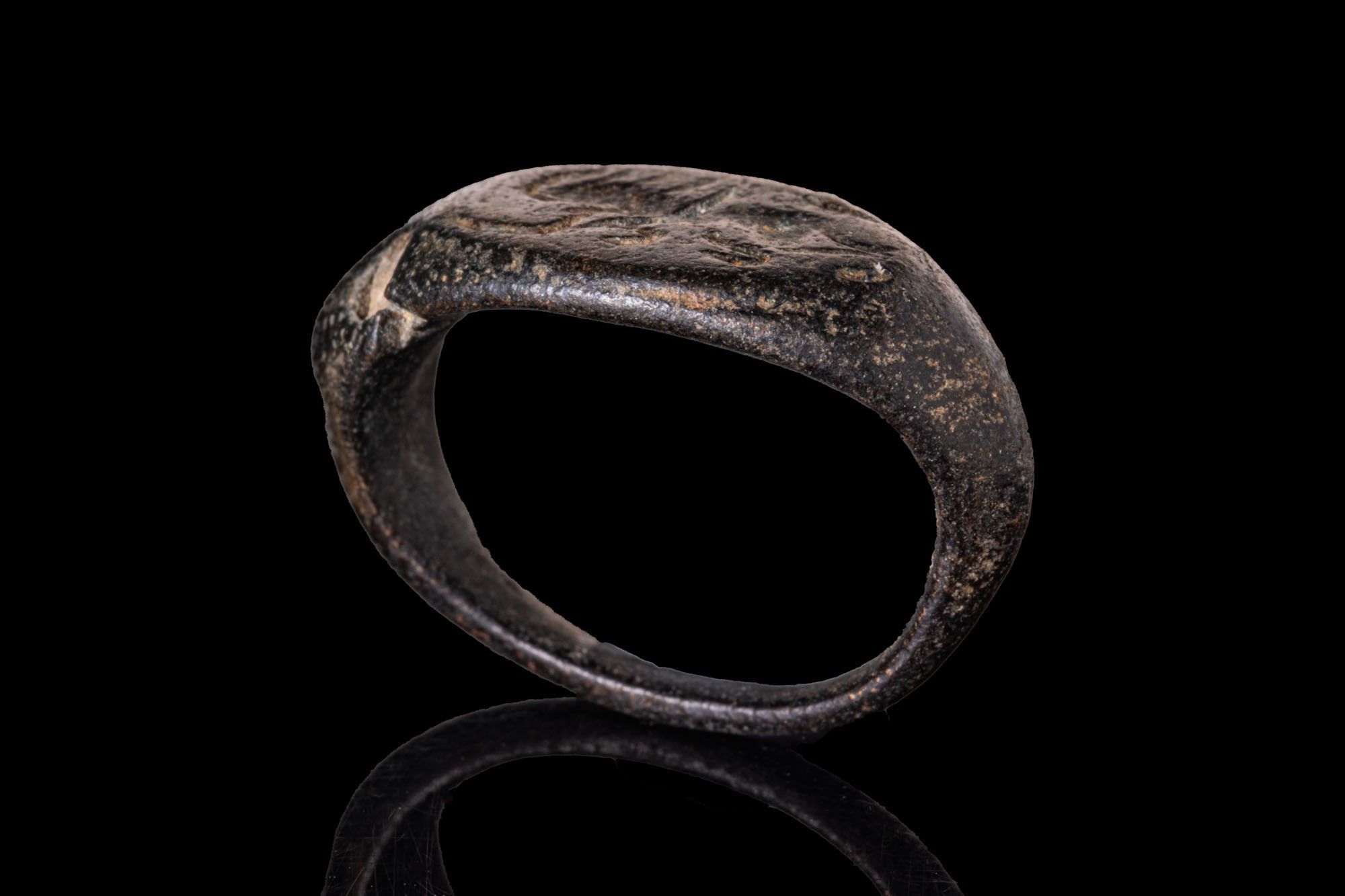 ROMAN BRONZE RING DEPICTING BEAST. Ca. AD 1 - 300. A bronze …