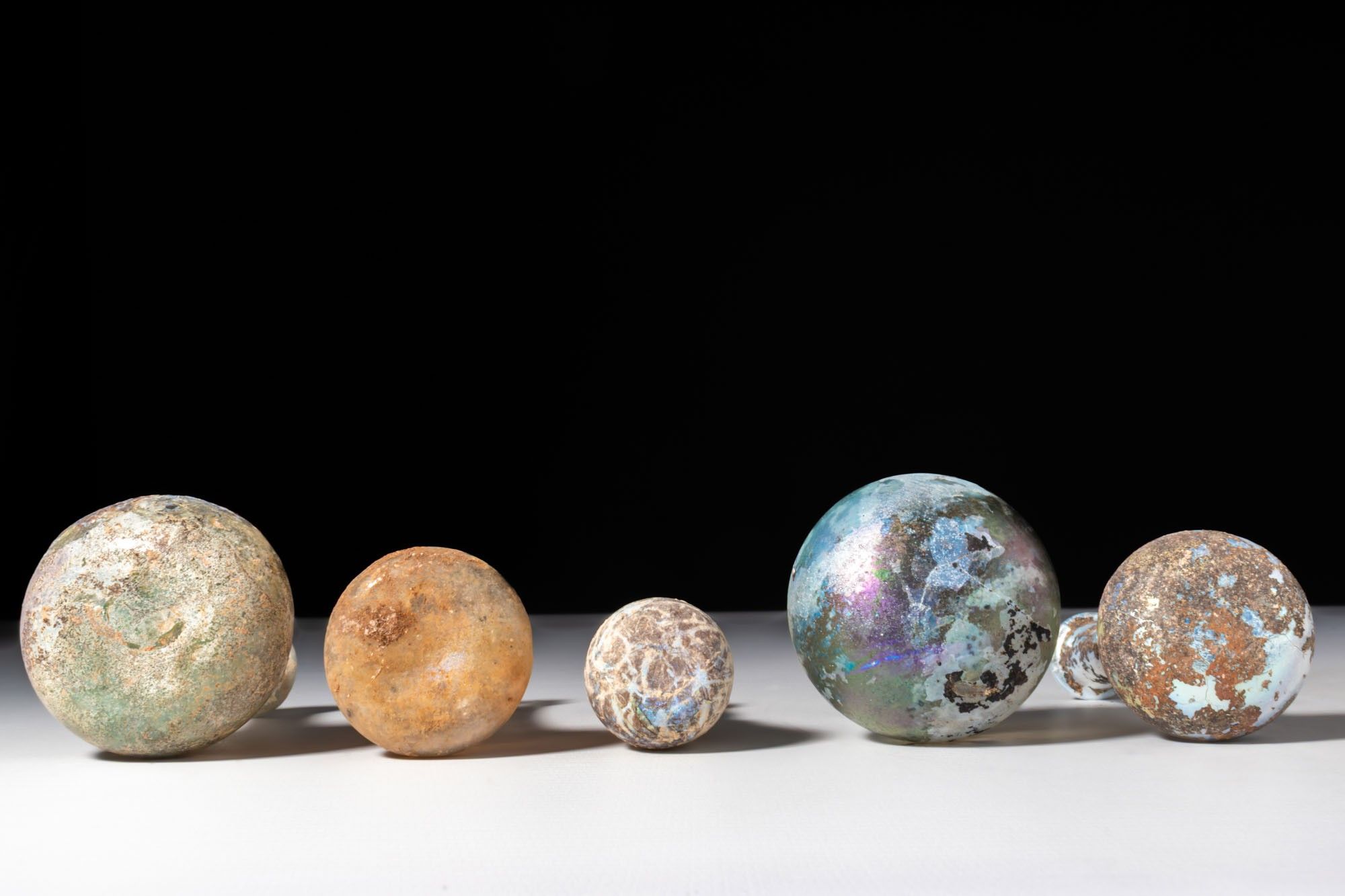 COLLECTION OF ROMAN GLASS UNGUENTARIA. Ca. AD 1 - 200. A col…