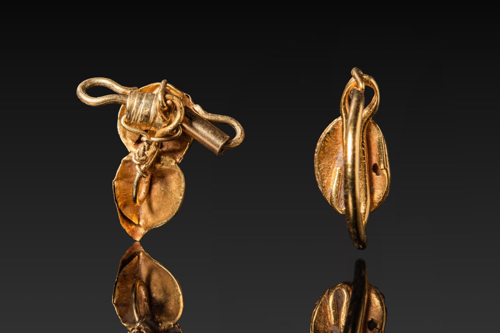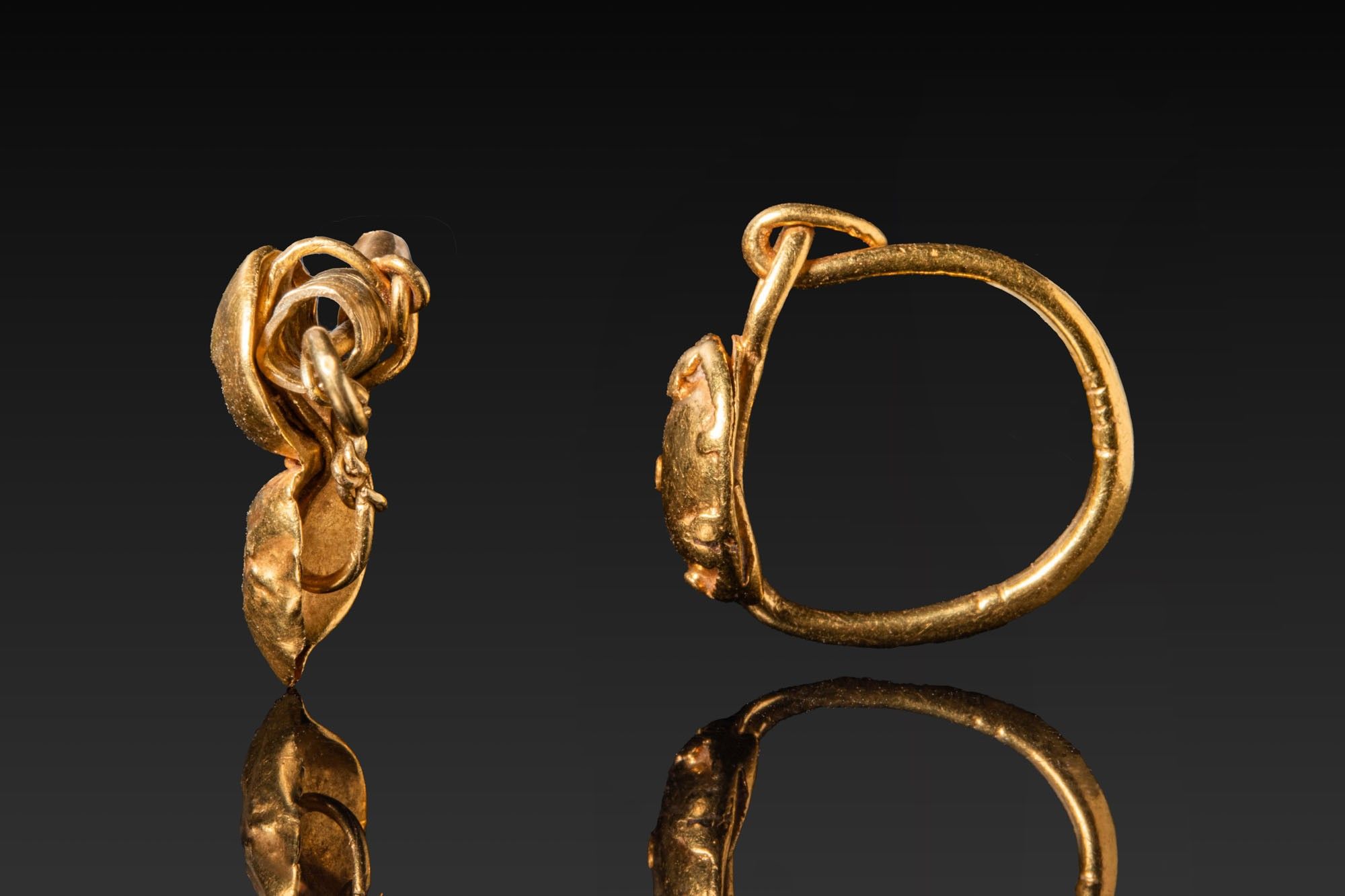 ROMAN GOLD EARRINGS WITH CONVEX DISCS. Ca. AD 100 - 200. A p…