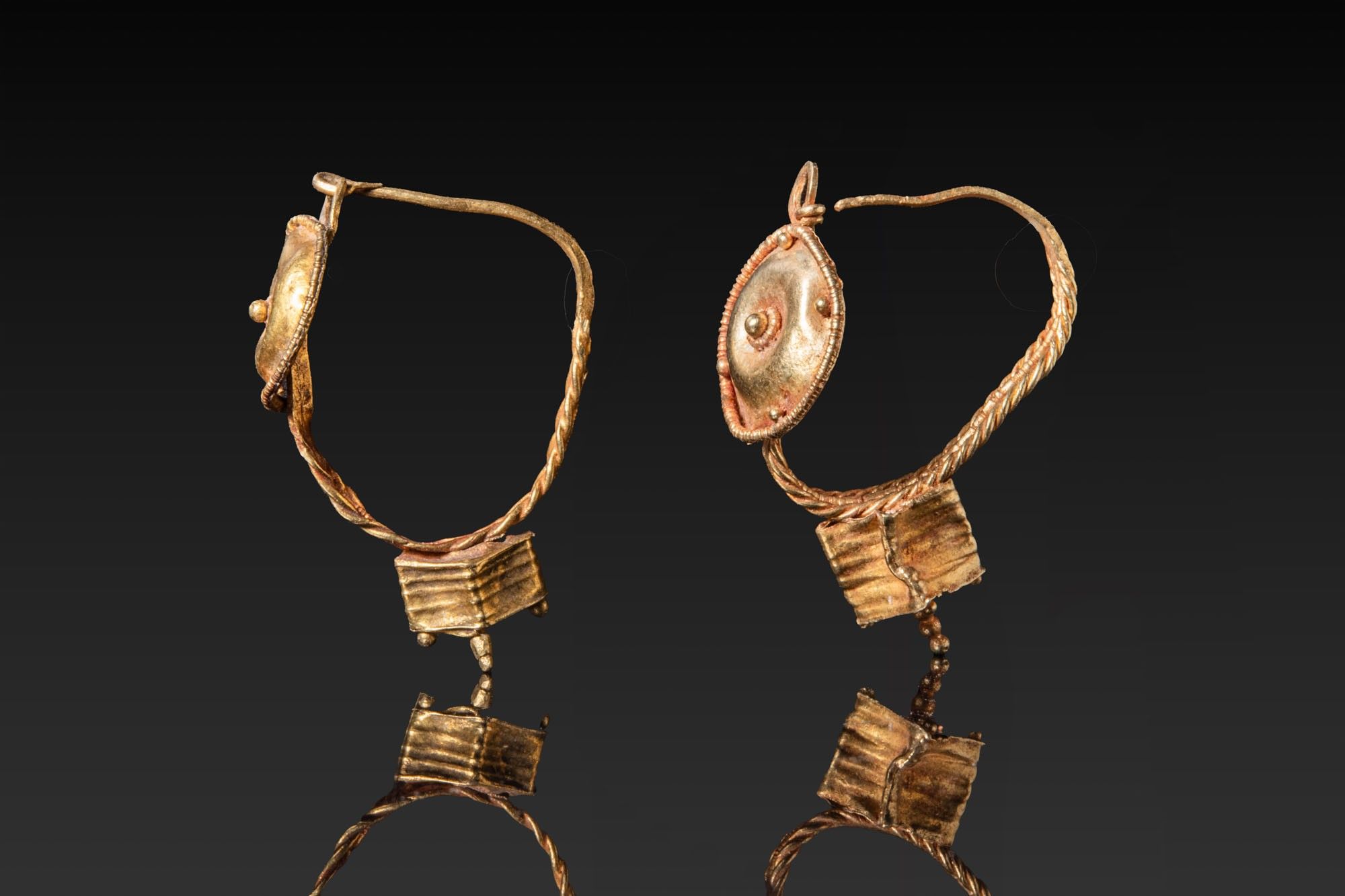 Premium MATCHED PAIR OF ROMAN GOLD BULLA EARRINGS. Ca. 100 BC - AD 1…