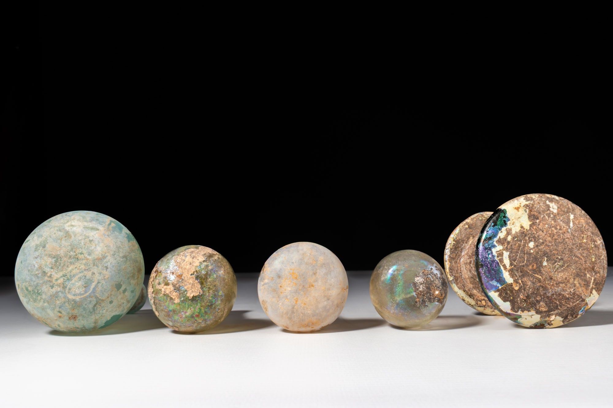 COLLECTION OF ROMAN GLASS UNGUENTARIA. Ca. AD 1 - 200. A col…