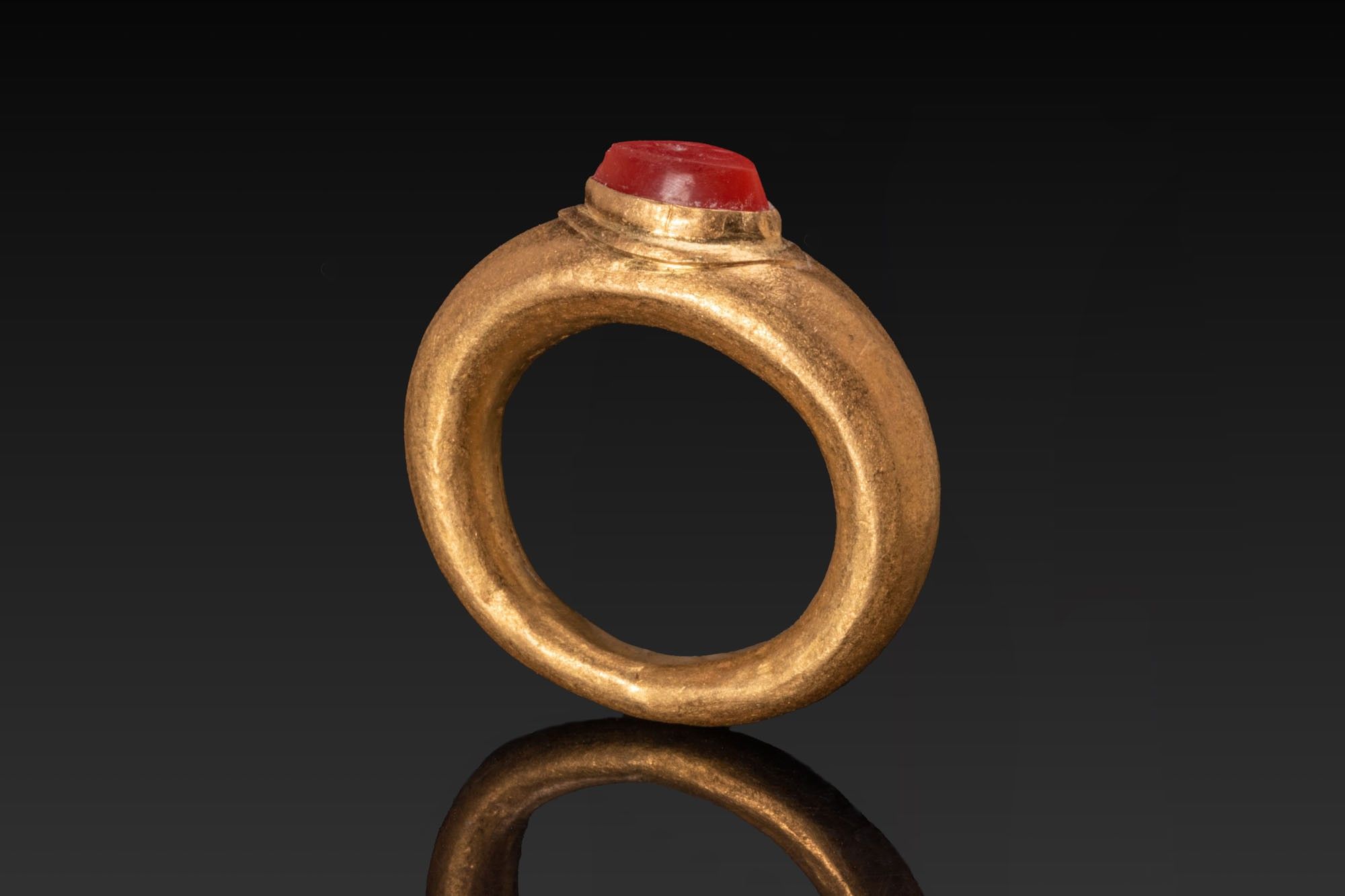 Premium ROMAN RED CARNELIAN INTAGLIO DEPICTING A SCORPION IN GOLD RI…