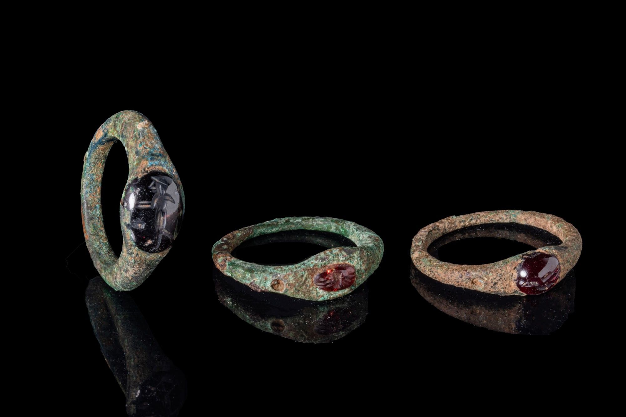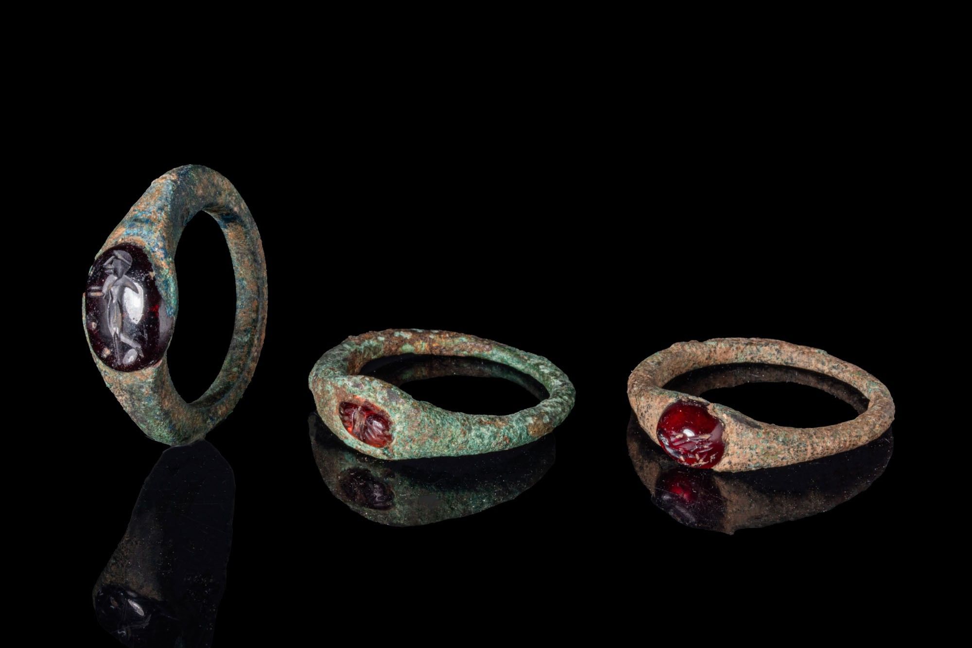 COLLECTION OF ROMAN BRONZE RINGS WITH INTAGLIOS. Ca. AD 1 - …