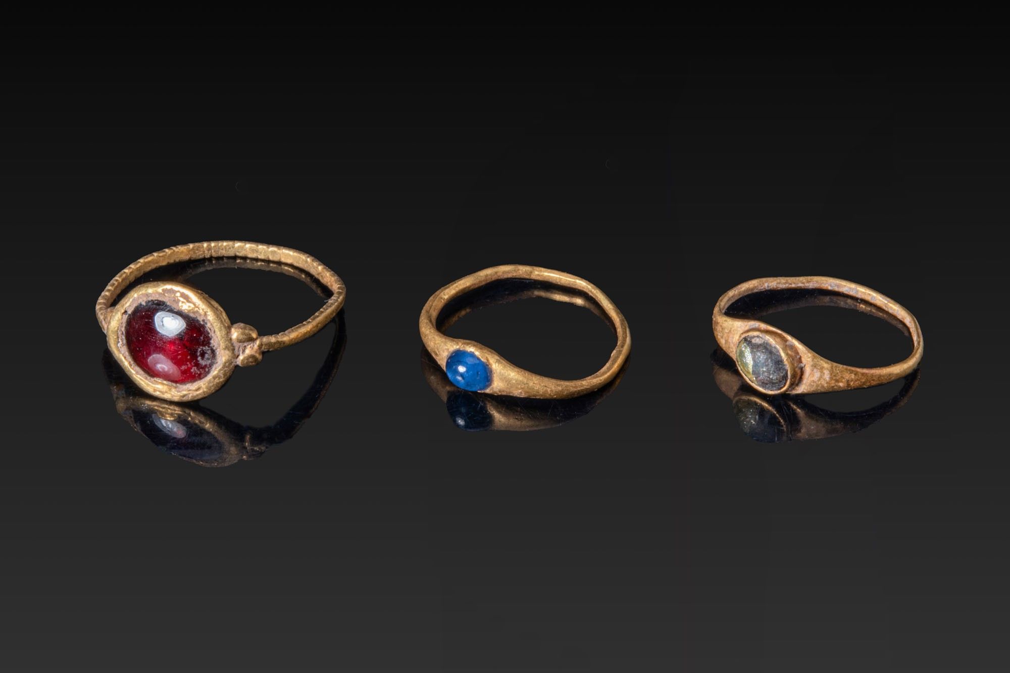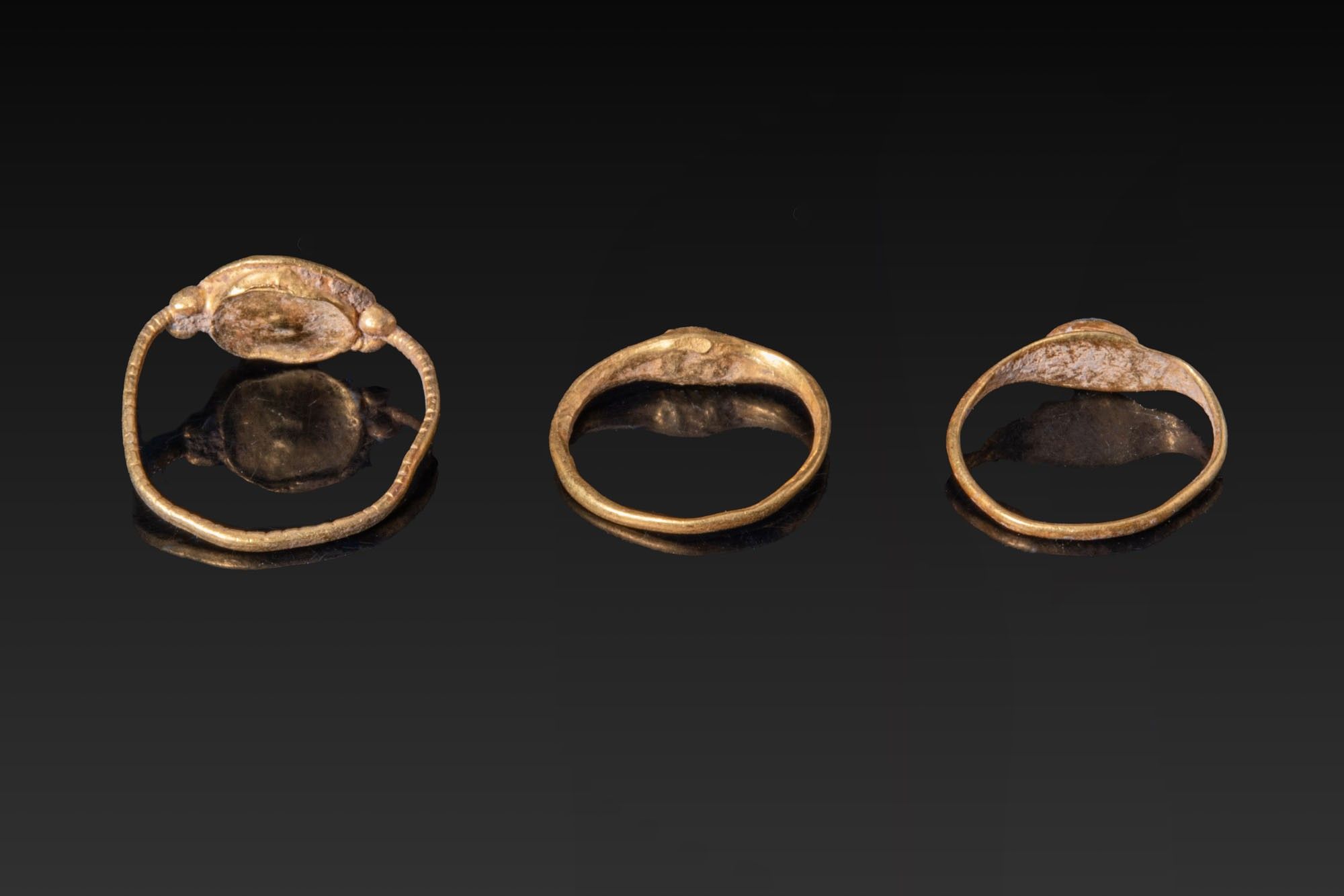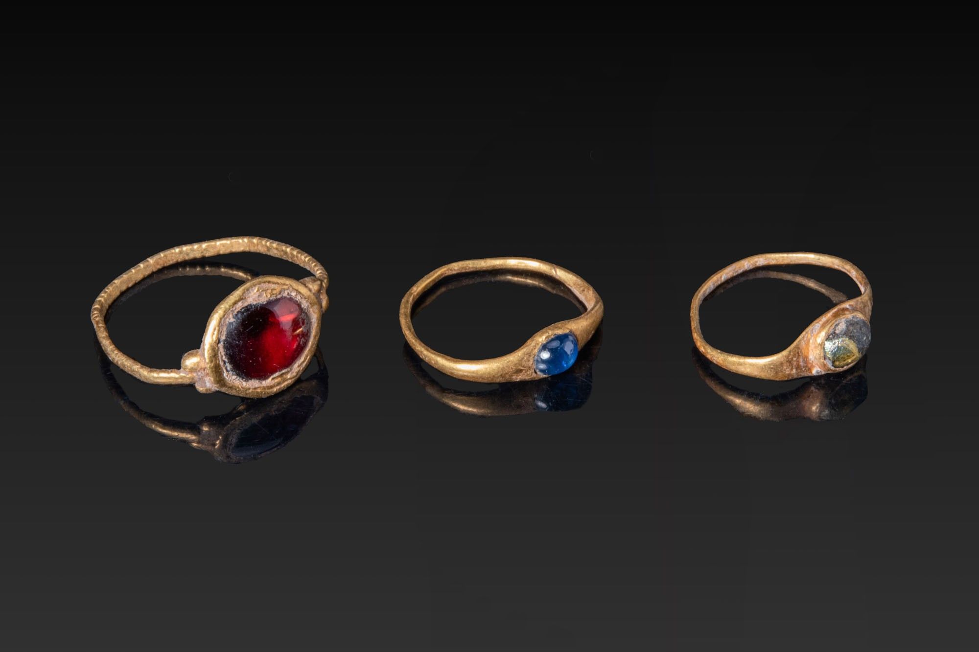 Premium SET OF ROMAN GOLD RINGS WITH CABOCHONS. Ca. AD 1 - 300. A co…