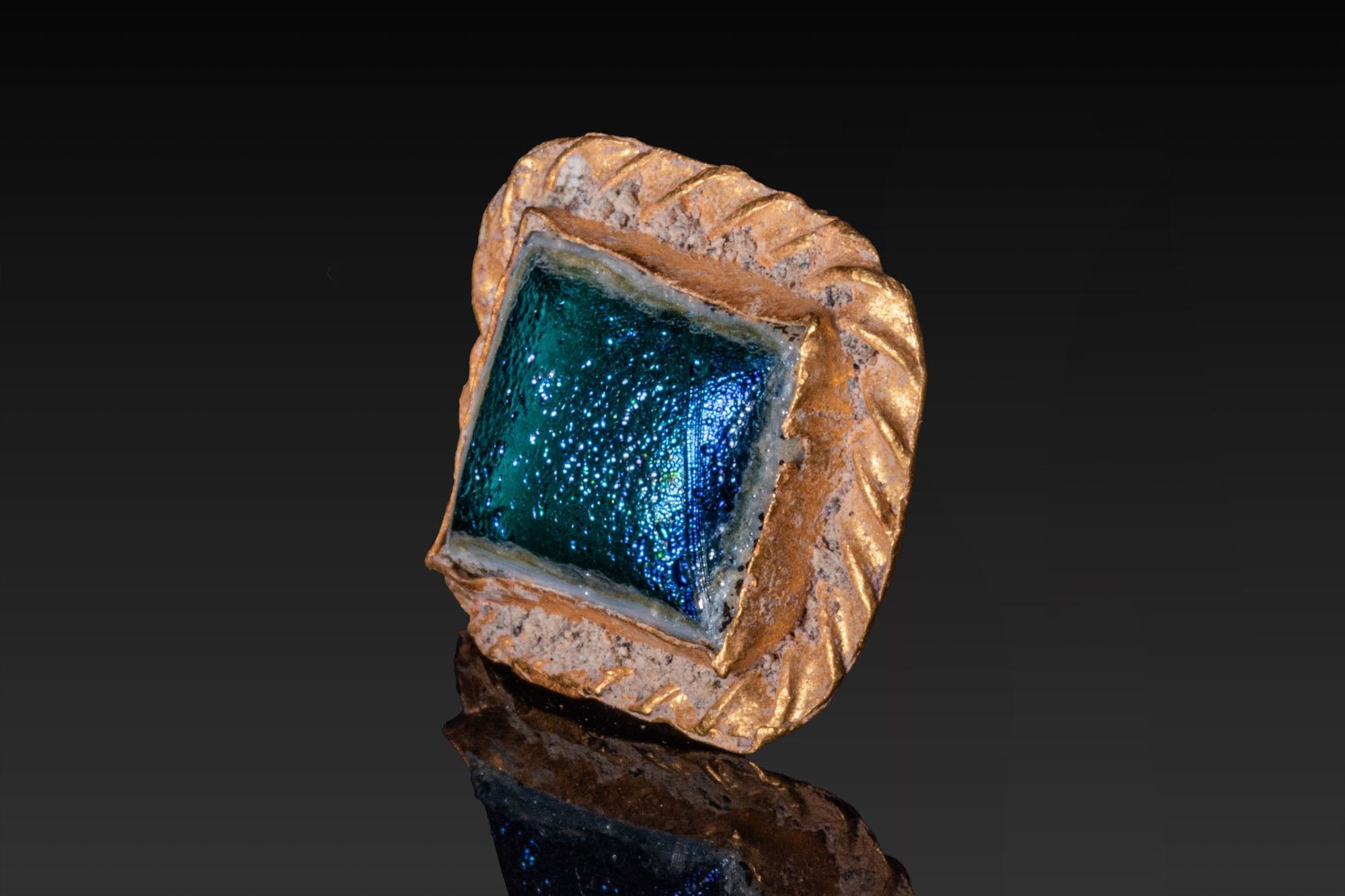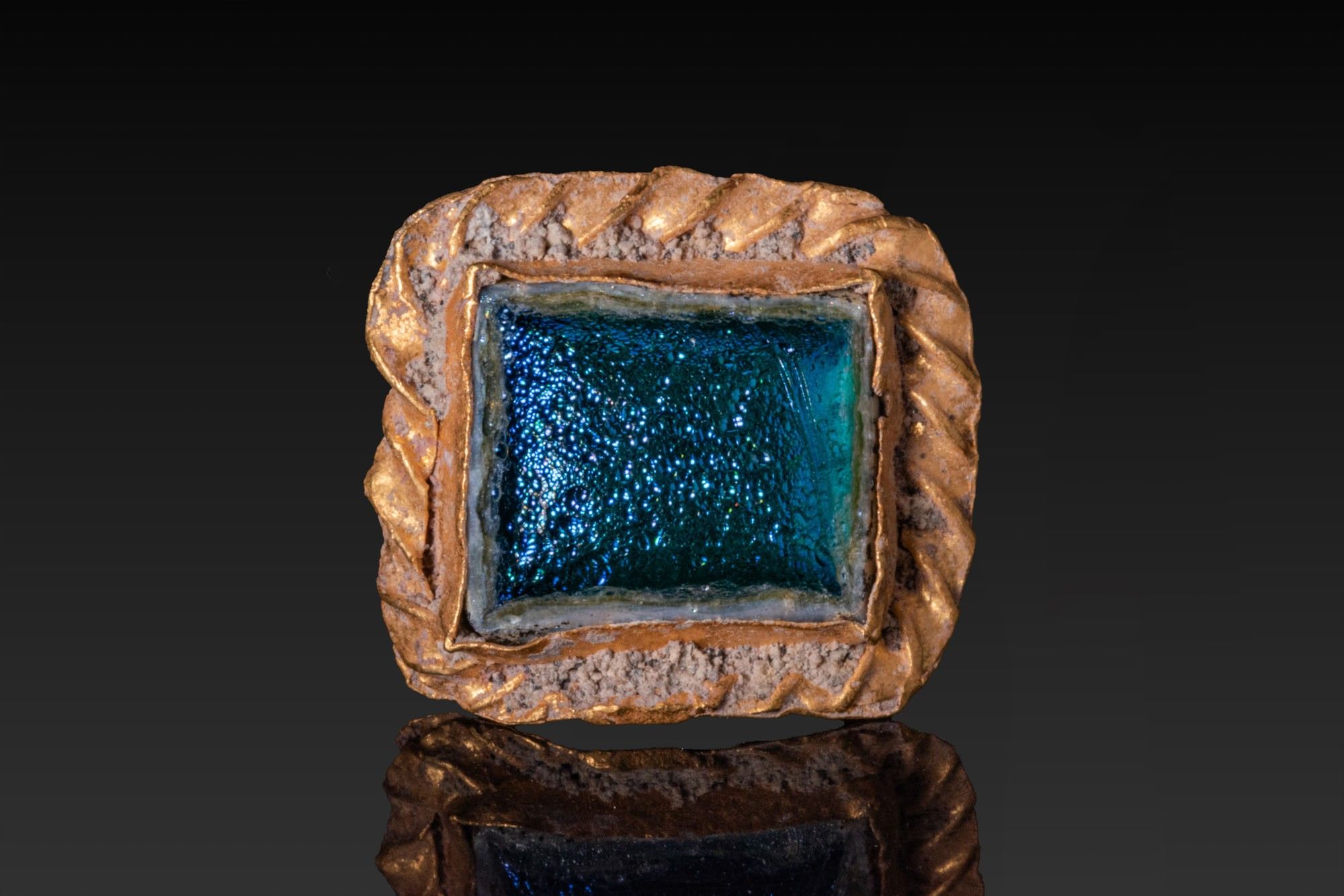 Premium ROMAN GOLD PENDANT WITH BLUE GLASS CABOCHON. Ca. AD 100 - 30…