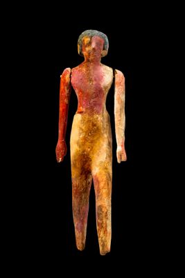 LARGE EGYPTIAN PAINTED WOODEN ROWER.