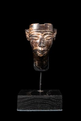 EGYPTIAN GLASS AND STEATITE MALE HEAD.