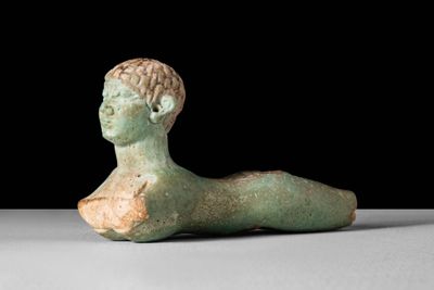 EGYPTIAN FAIENCE FISH-SHAPED OFFERING SPOON AND ACHAEMENID E…