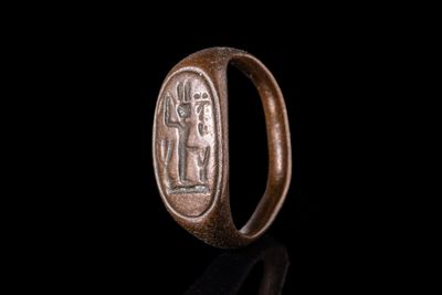 EXTREMELY RARE EGYPTIAN BRONZE CARTOUCHE RING. New Kingdom, …