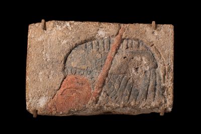 EGYPTIAN AMARNA PERIOD SANDSTONE RELIEF DEPICTING ARM AND CR…