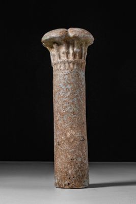 EGYPTIAN FAIENCE COLUMN-SHAPED MODEL WITH LOTIFORM CAPITAL.