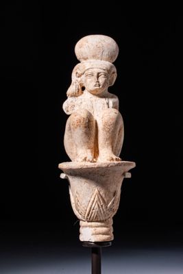 EGYPTIAN STONE STOPPER WITH YOUNG SUN GOD.