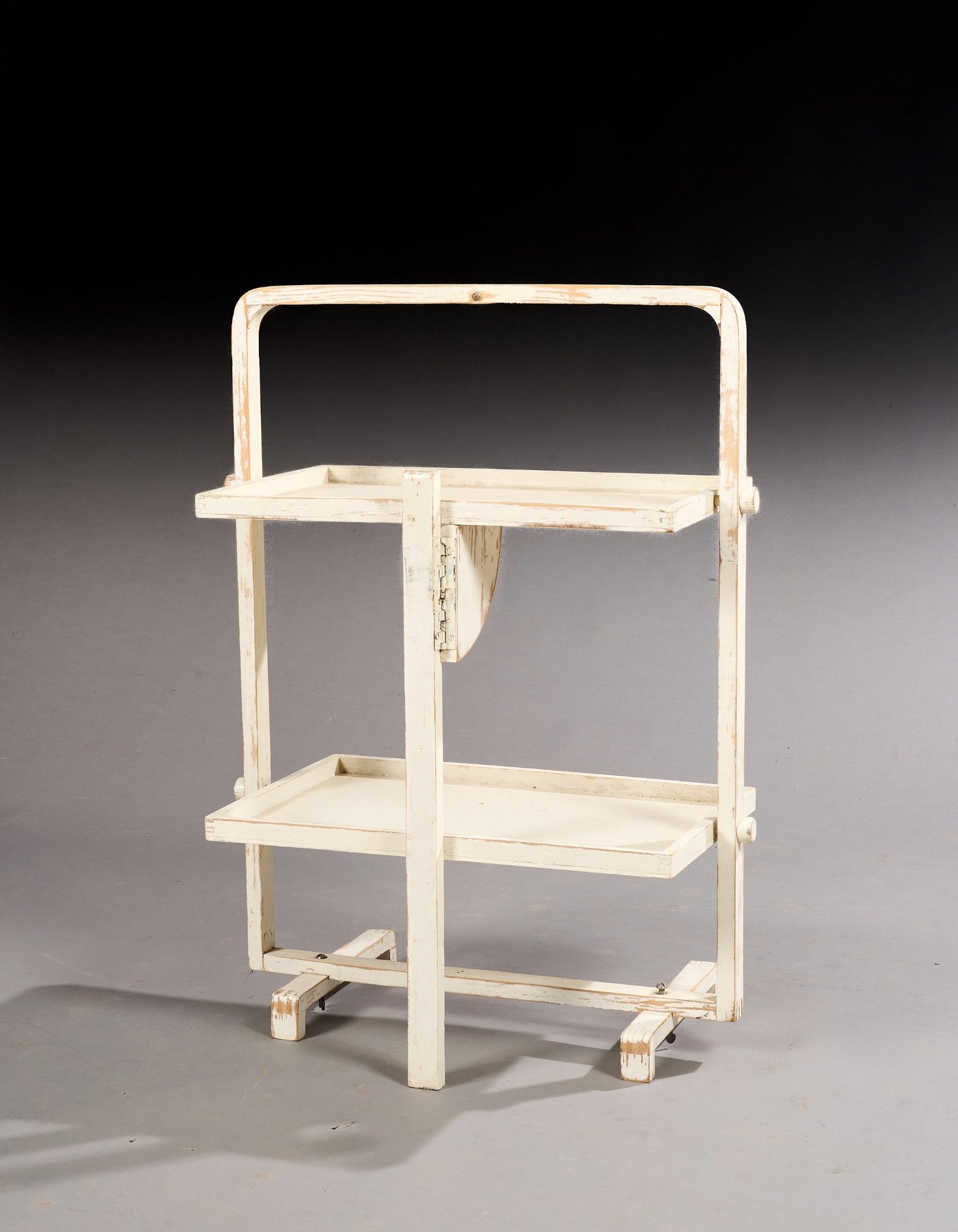 Rectangular plywood folding table with two superimposed tops, formerly painted white