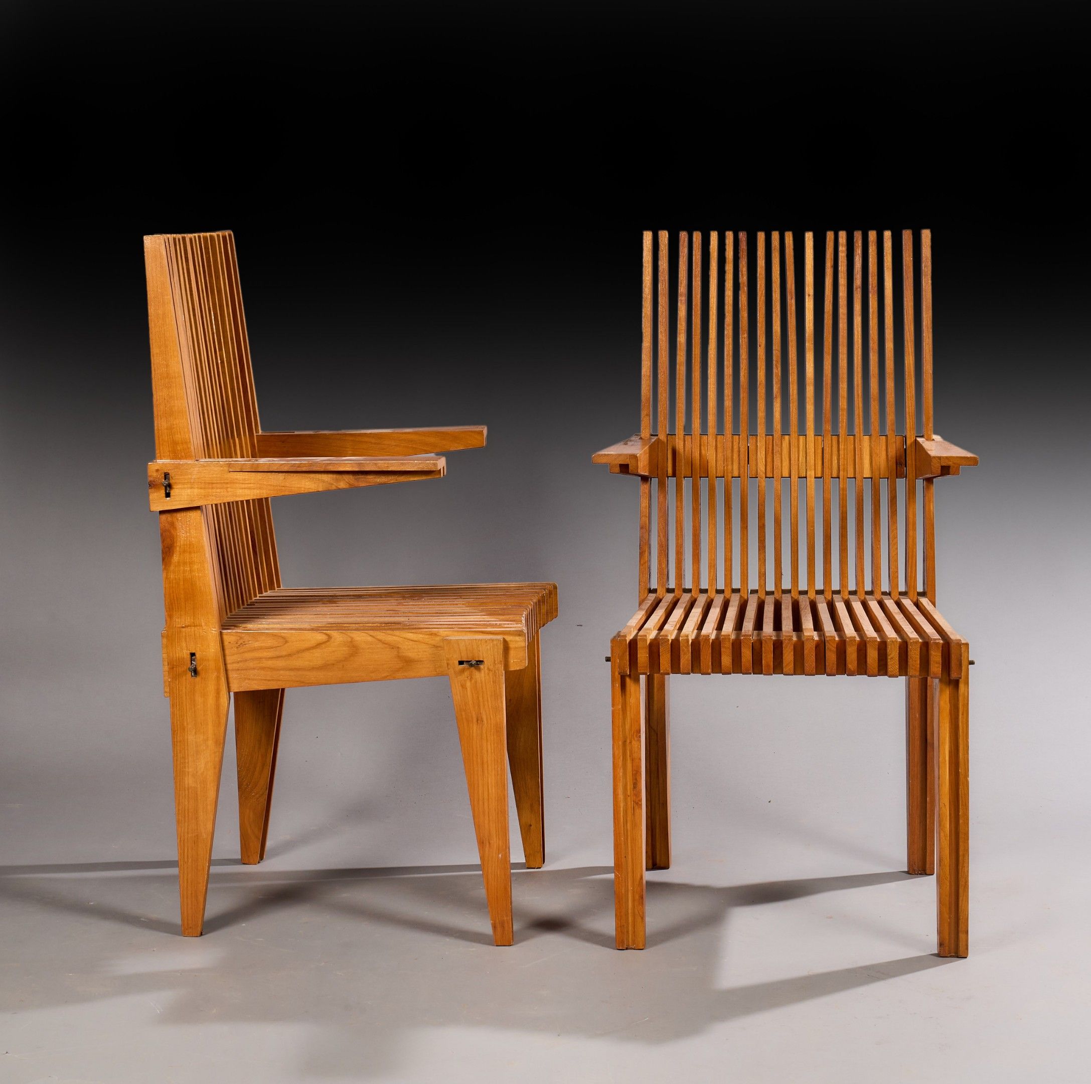 Pair of armchairs in cut and screwed wooden slats, work from…