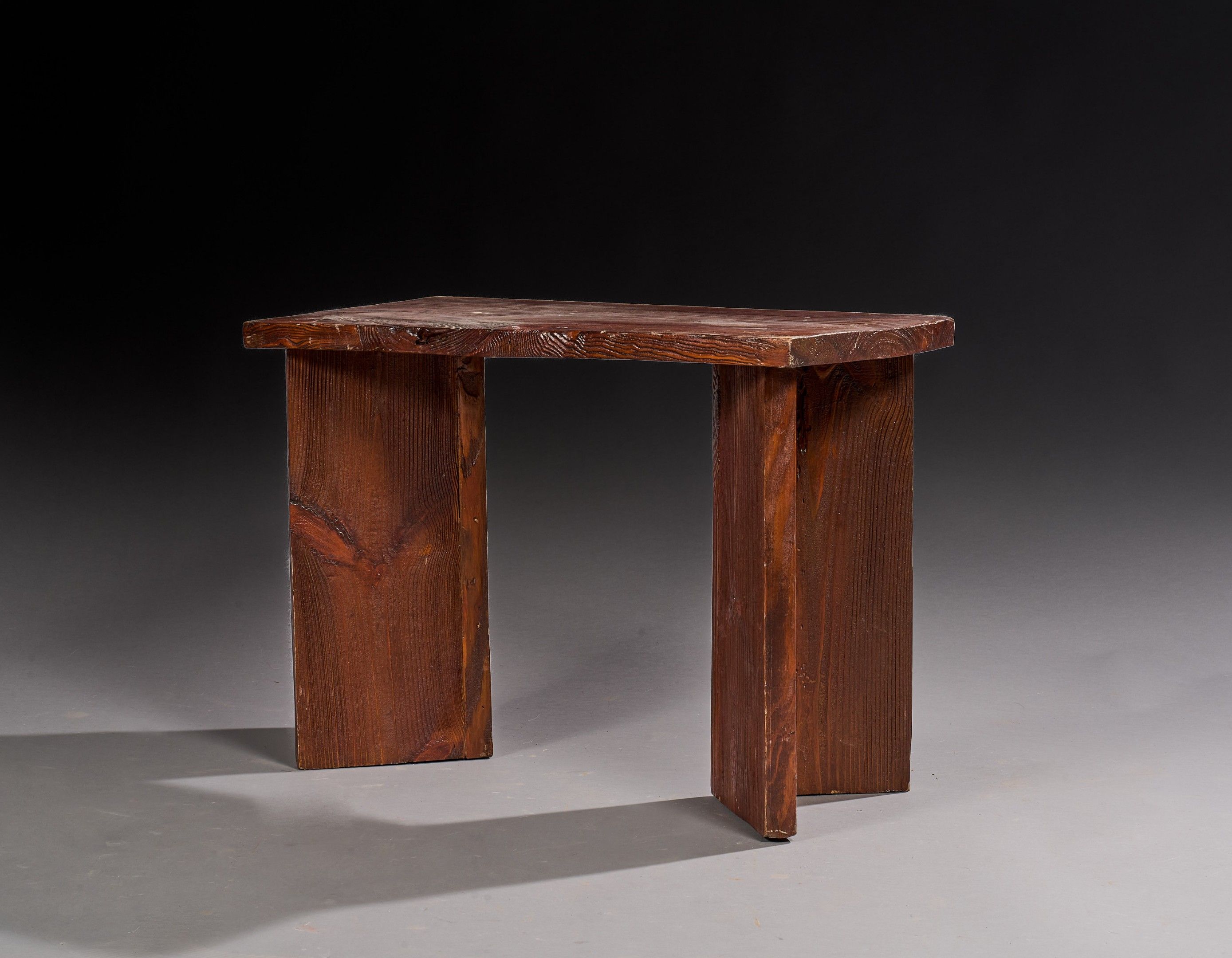 Coffee table or end of sofa with rectangular top in sandblasted and brown-stained wood on angular solid legs