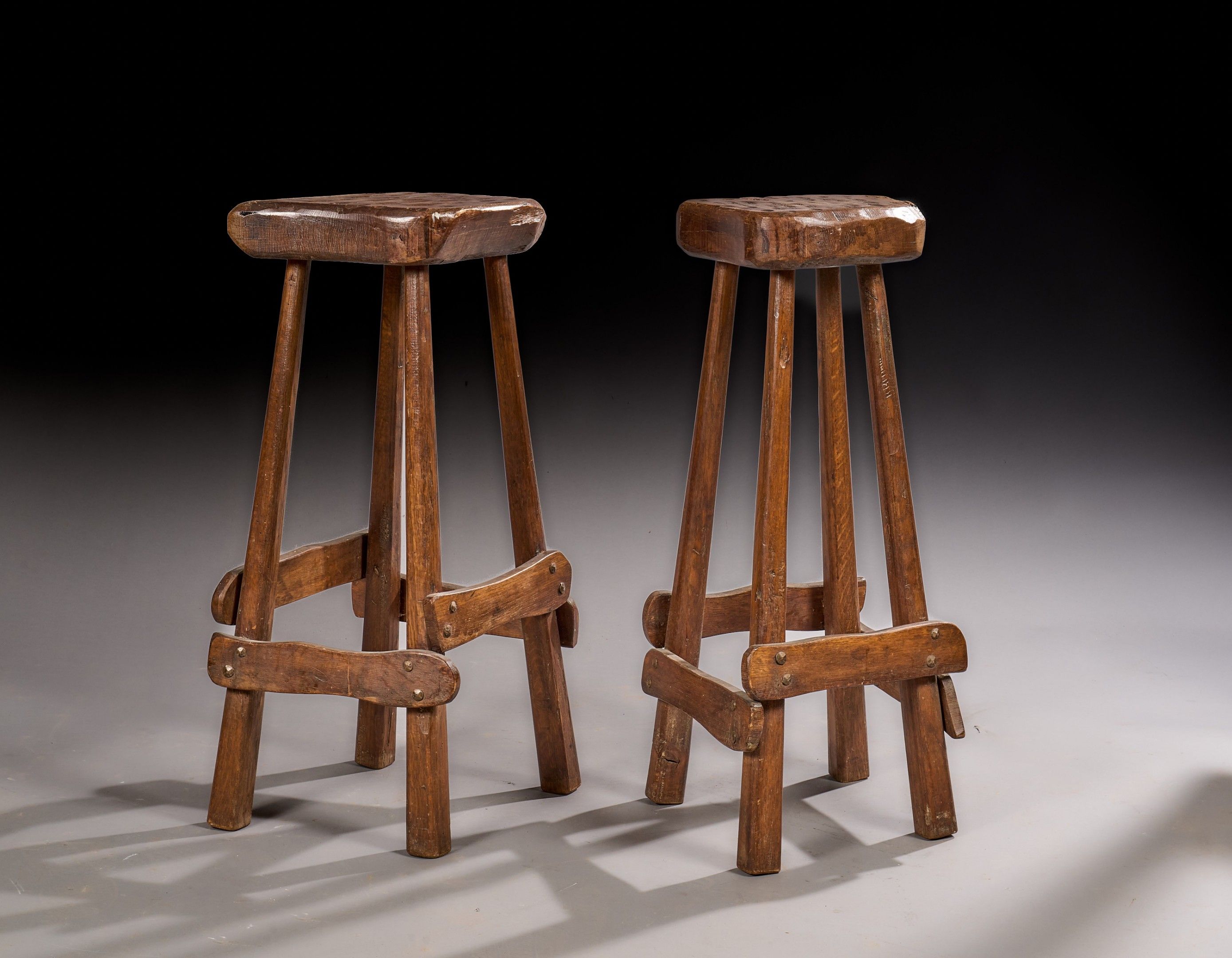Brutalist work from the 60s Pair of tall barstools with thic…