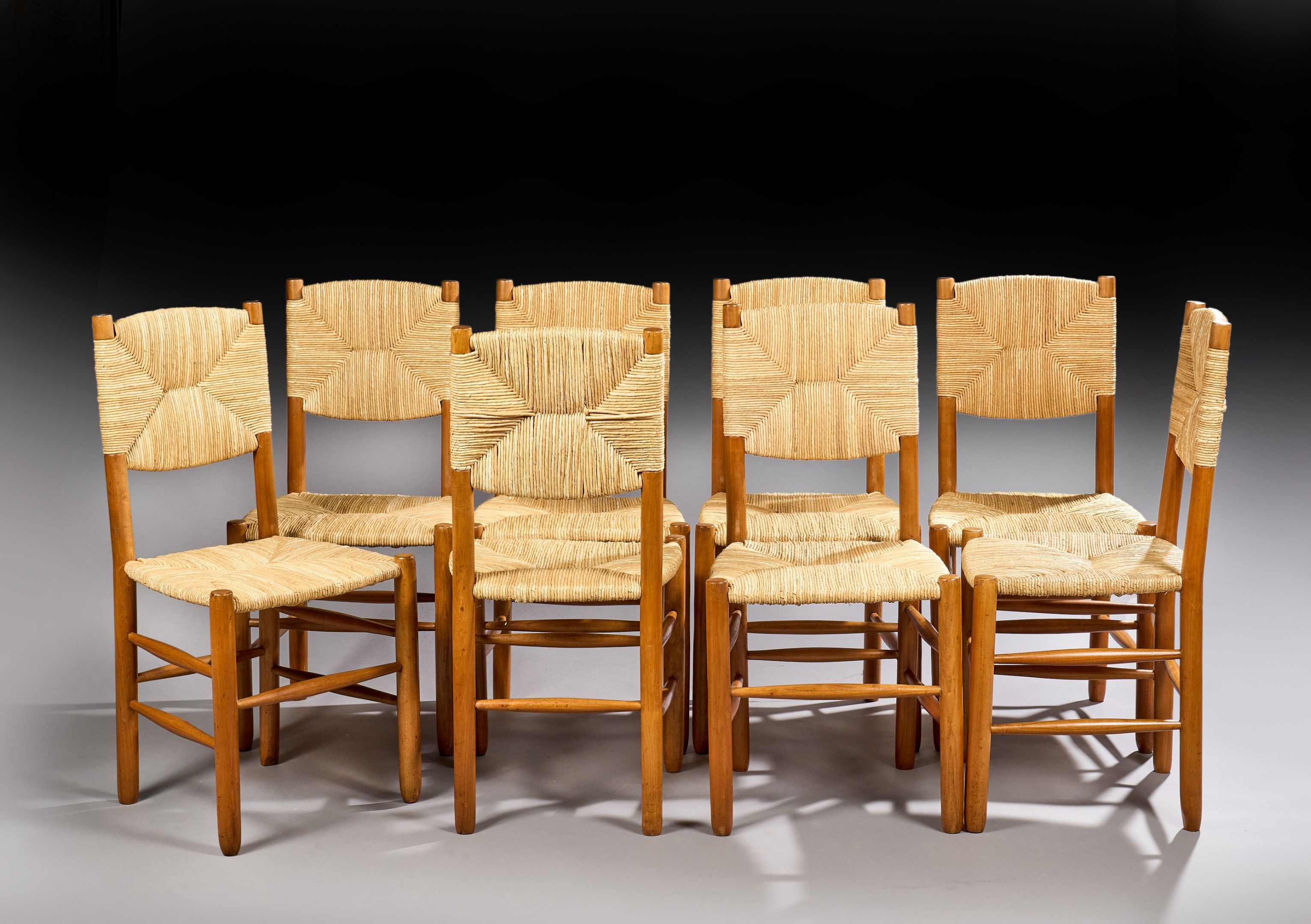 Premium Charlotte PERRIAND (1903-1999) Bauche?suite of eight chairs …
