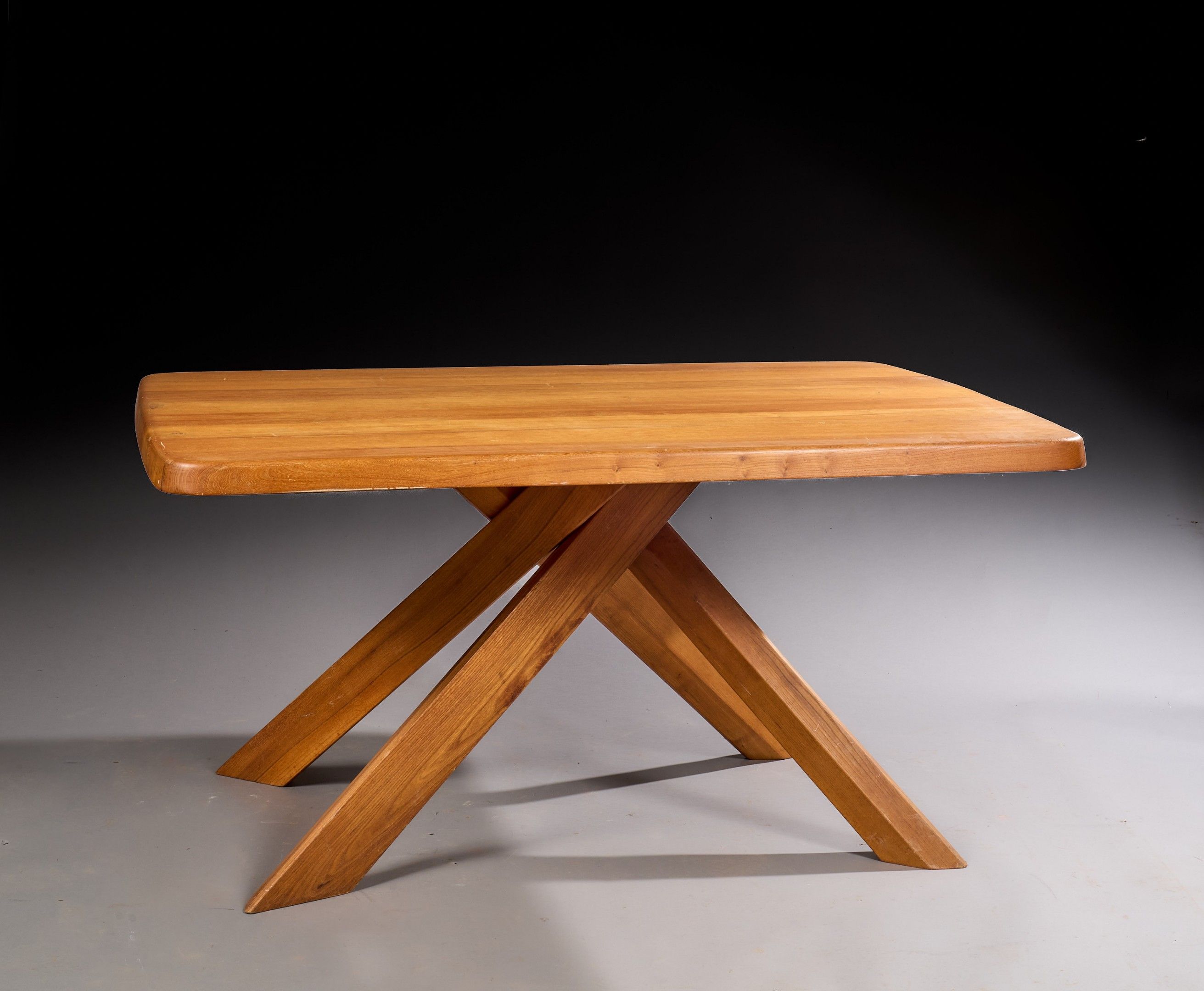 Premium Pierre CHAPO (1827-1987) T35 Elm table with thick rectangula…