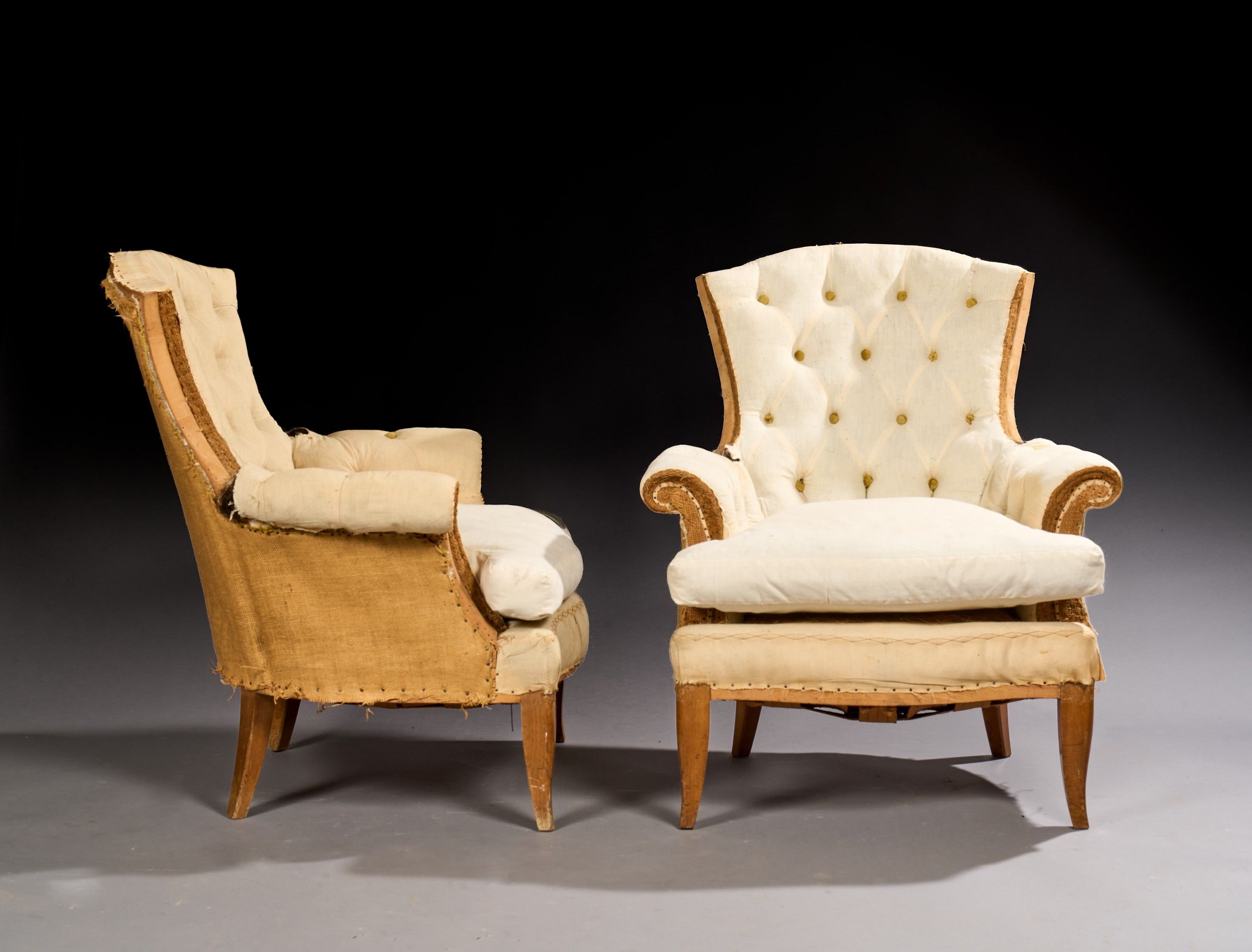 Pair of "comfortable" gondola armchairs with rolled armrests…