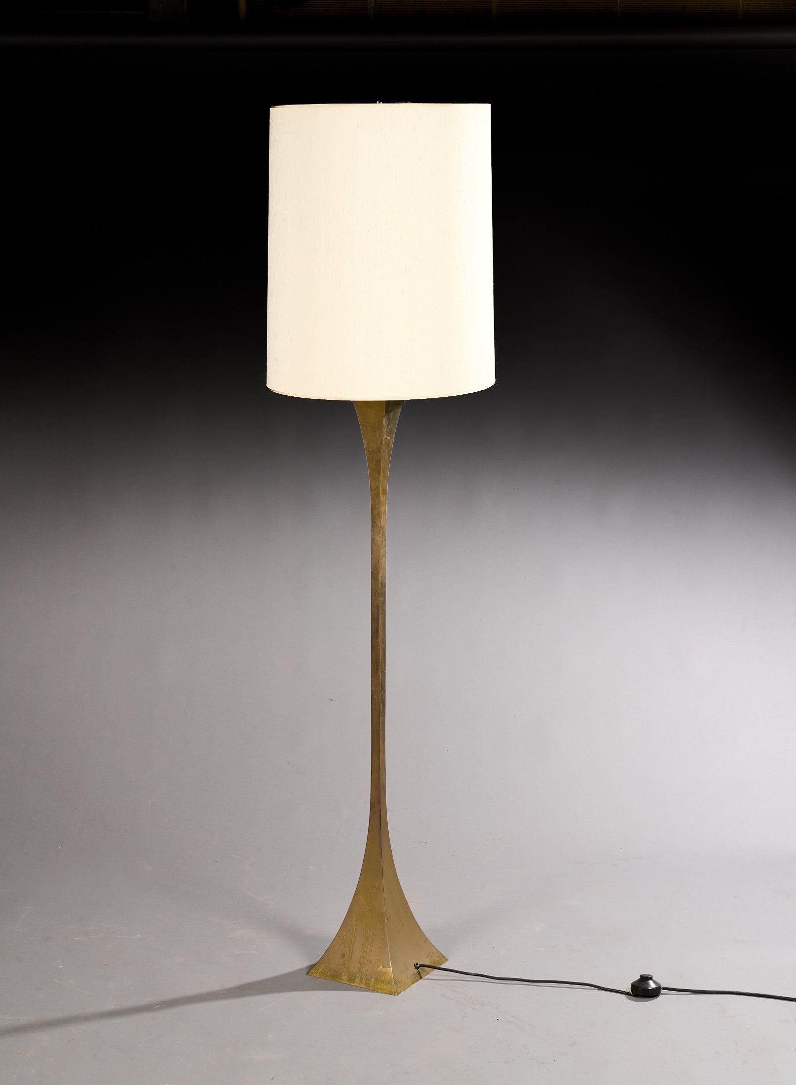Four-arm floor lamp with flared square-section brass shaft and matching base, 1970s