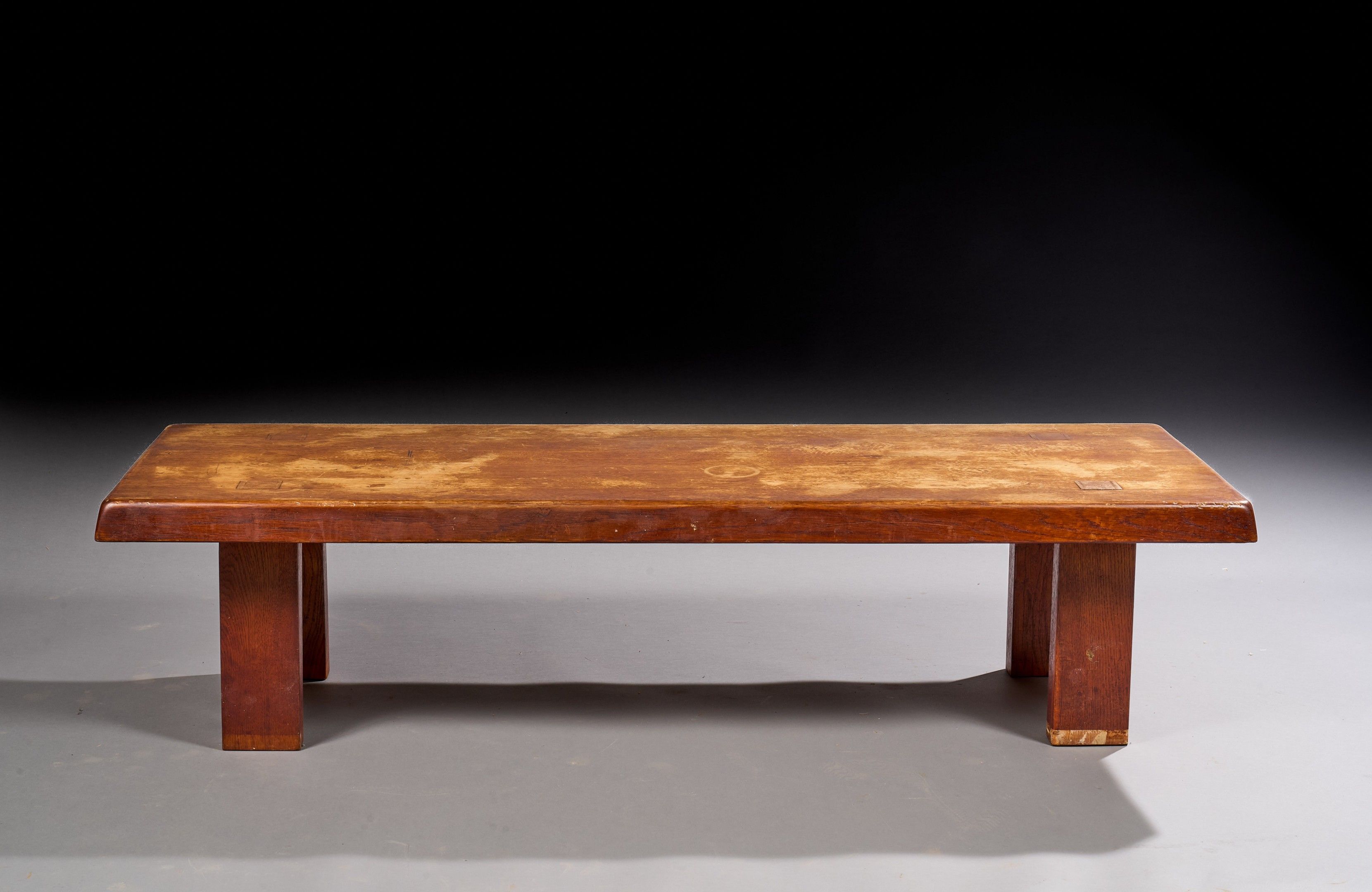 Natural wood coffee table with rectangular bevelled top on four square legs, circa 1970