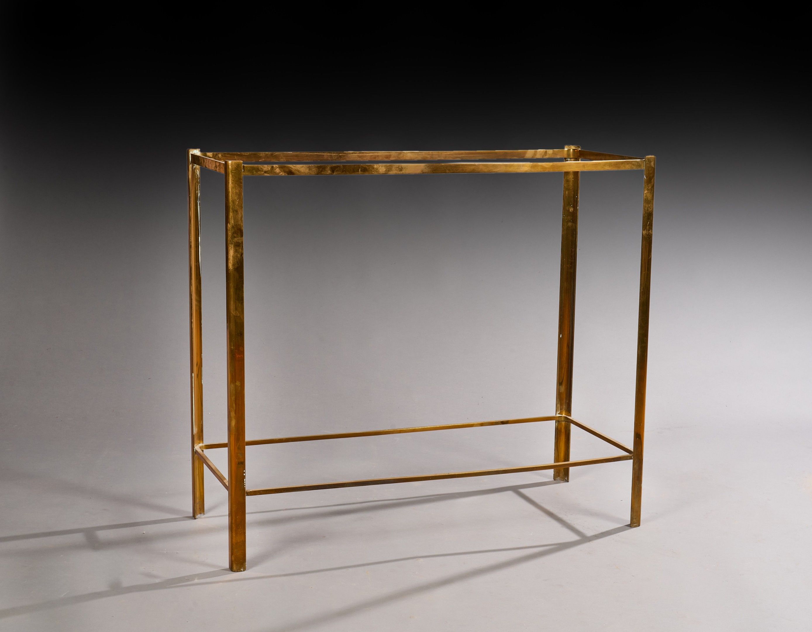 Console with curved brass uprights and rectangular glass top