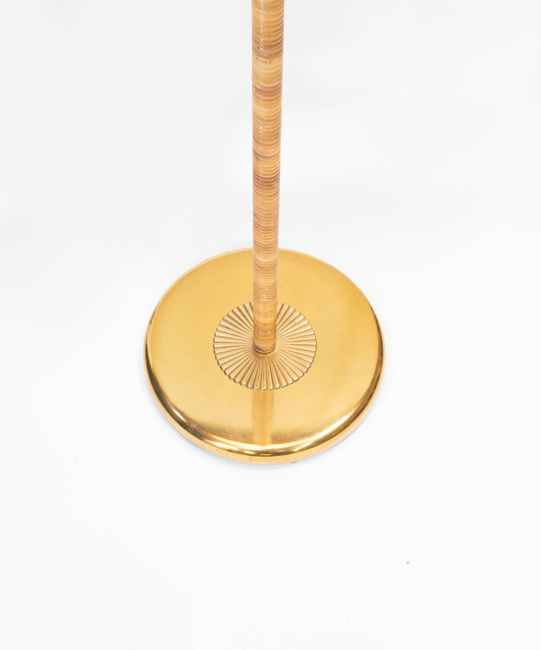 A rare brass, rattan and birch slats floor lamp by Gunilla Jung for Orno - circa 1940