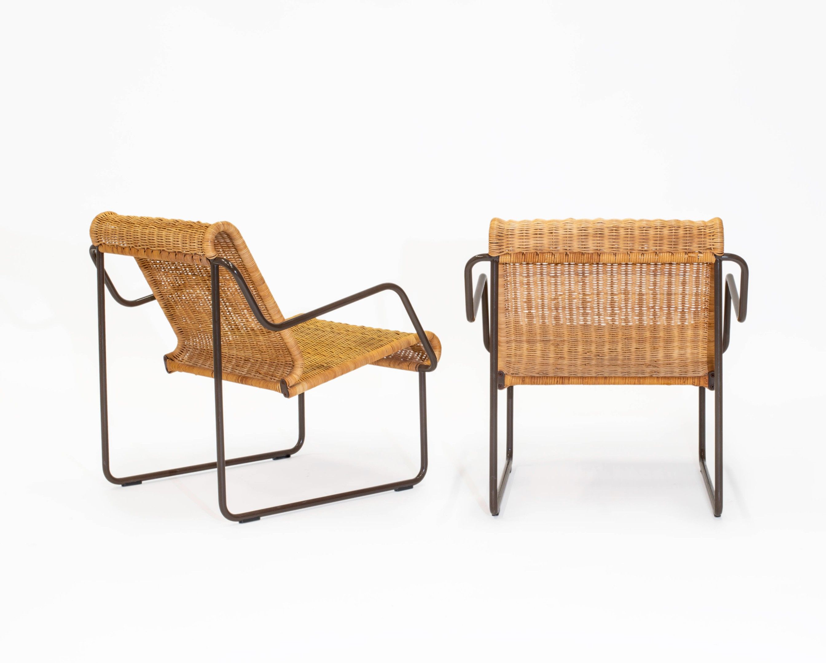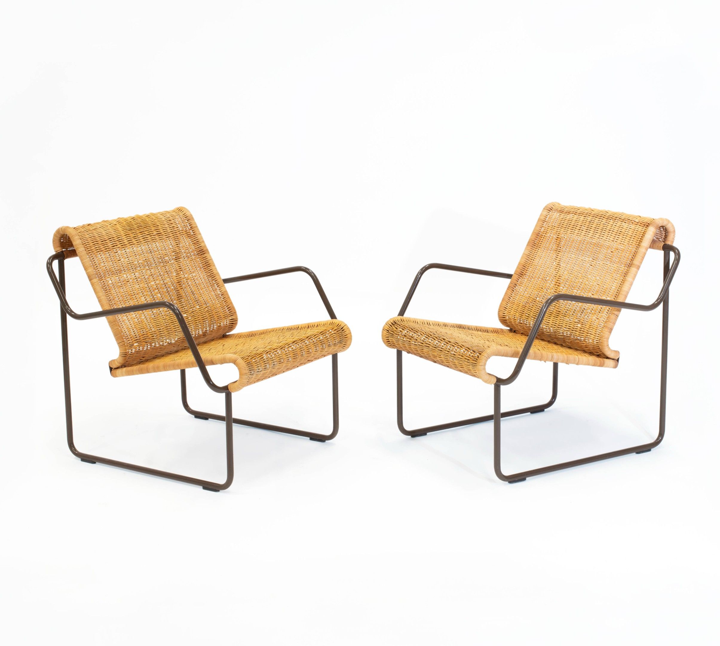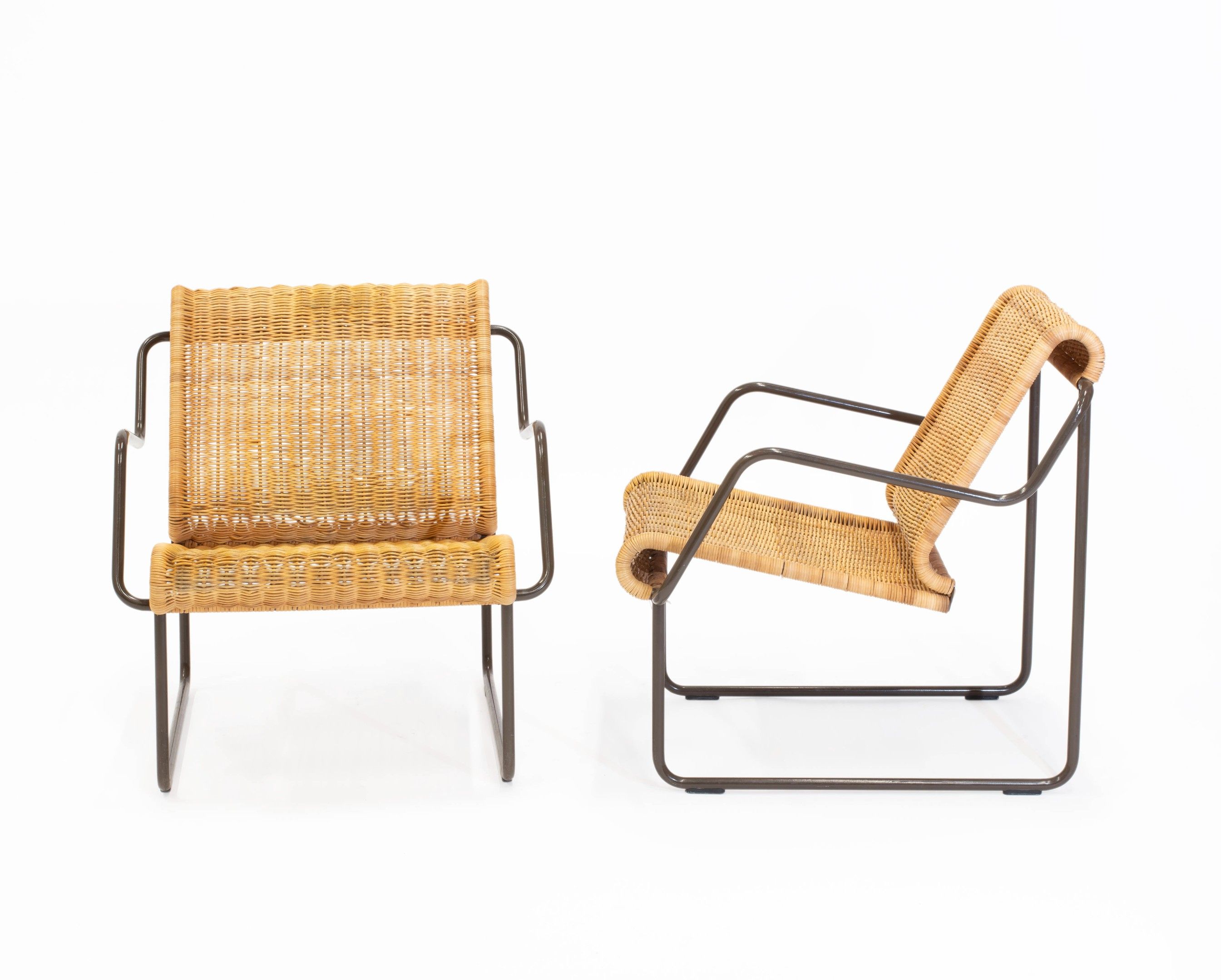 A pair of metal and rattan "Pressu" armchairs by Yrjö Kukkapuro for Avarte - circa 1975