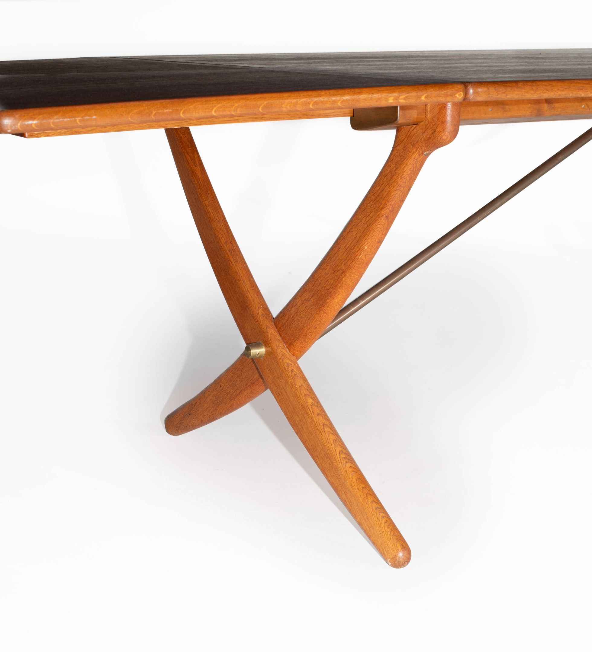 An oak, teak and brass mod. AT304 table by Hans J. Wegner for Andreas Tuck - 1955