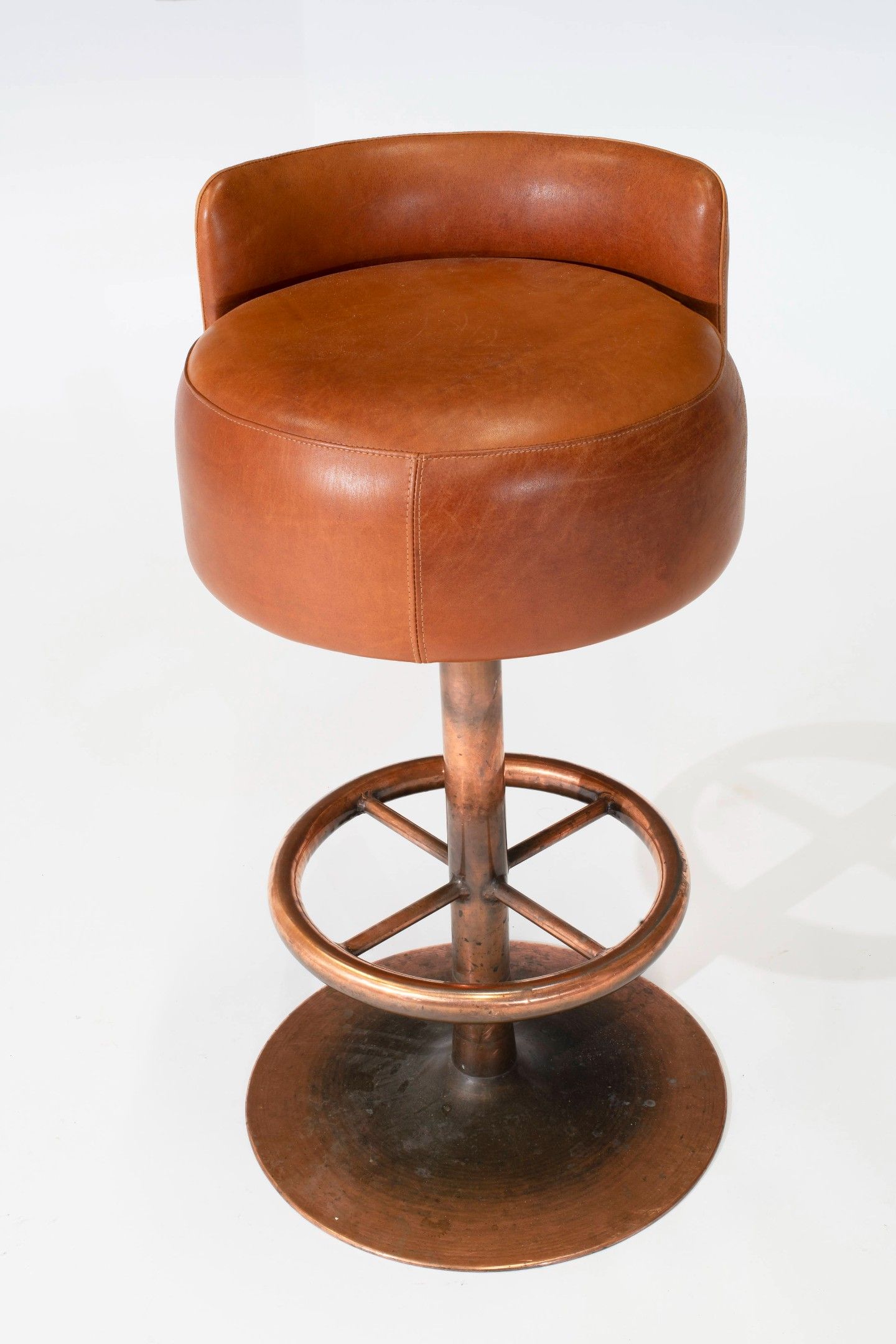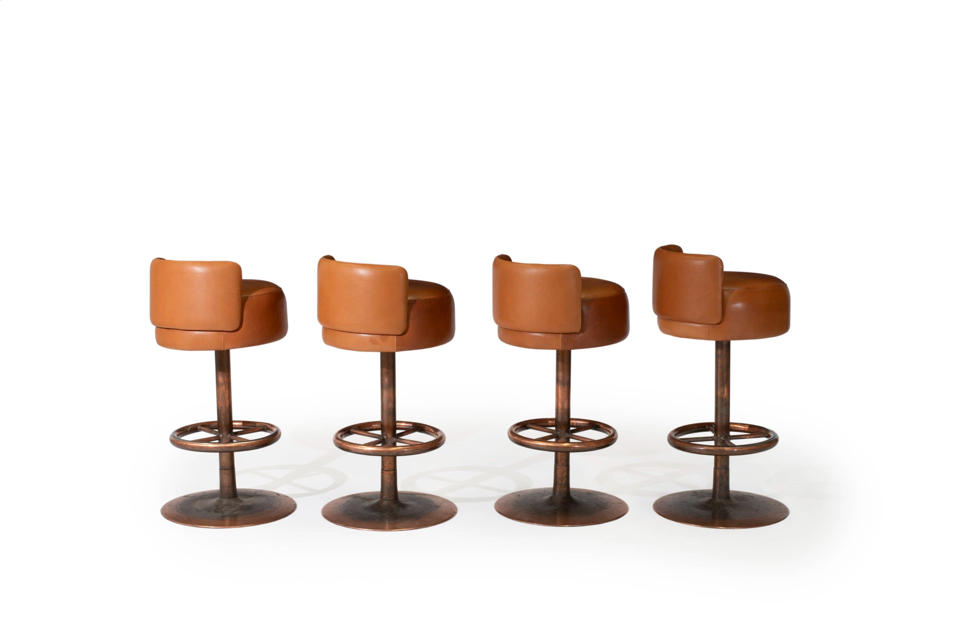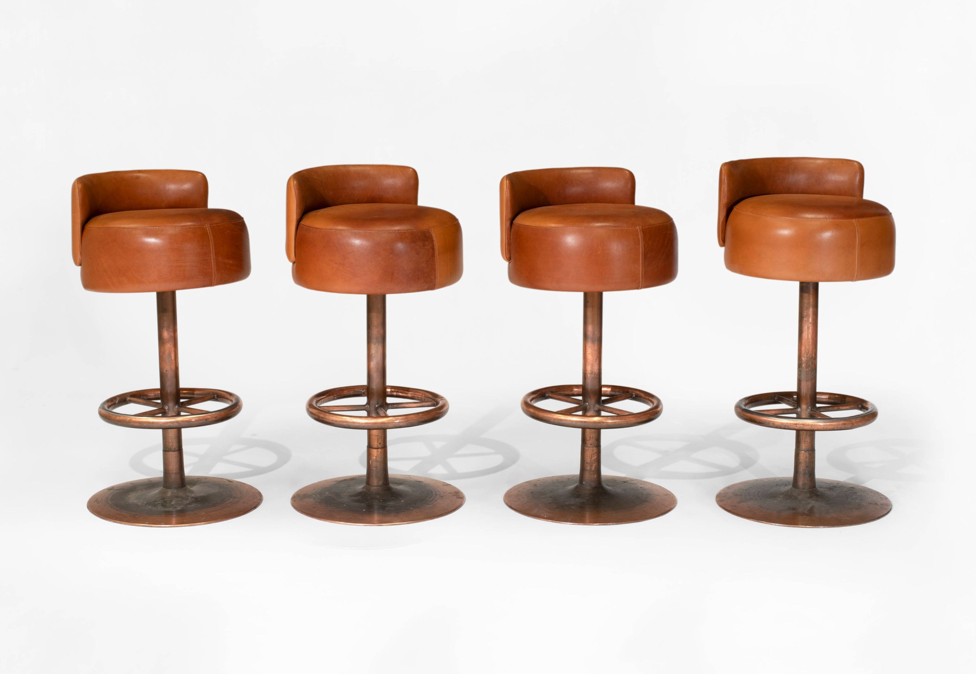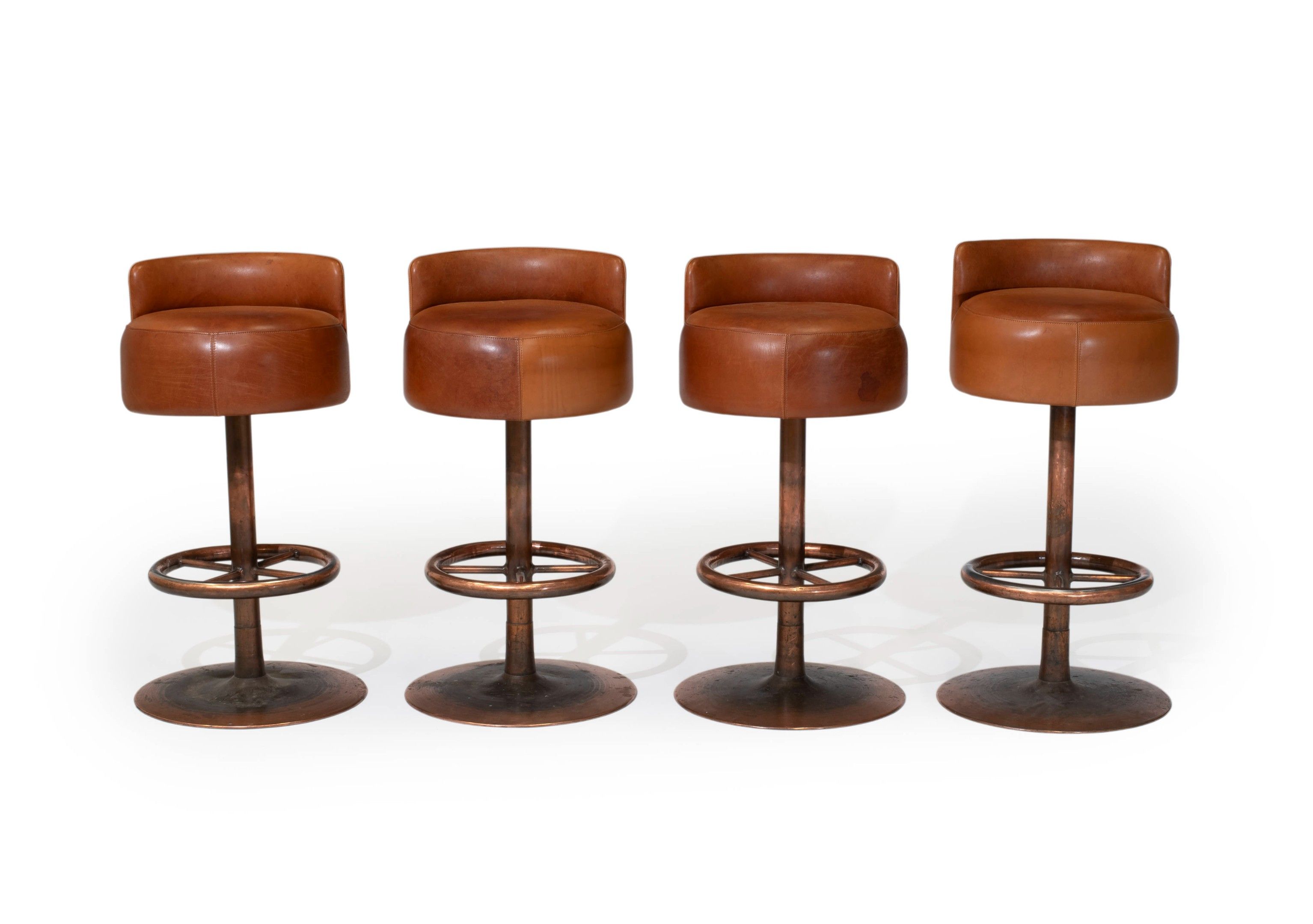 A set of four copper and leather bar stools attributed to Ilmari Tapiovaara - circa 1960
