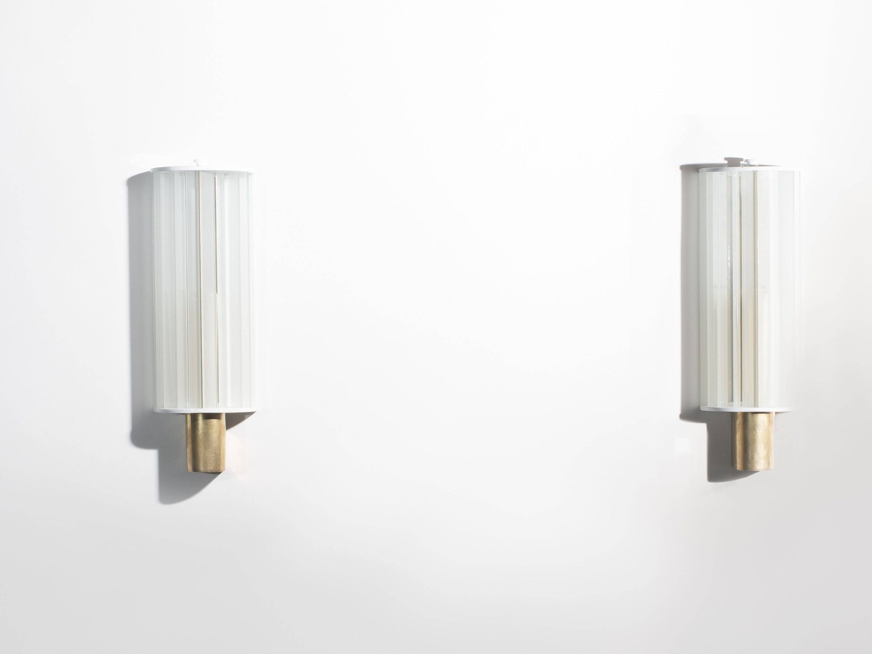 A pair of brass, lacquered metal and frosted glass "Elongated" wall lamps by Poul Henningsen for Louis Poulsen - 1934