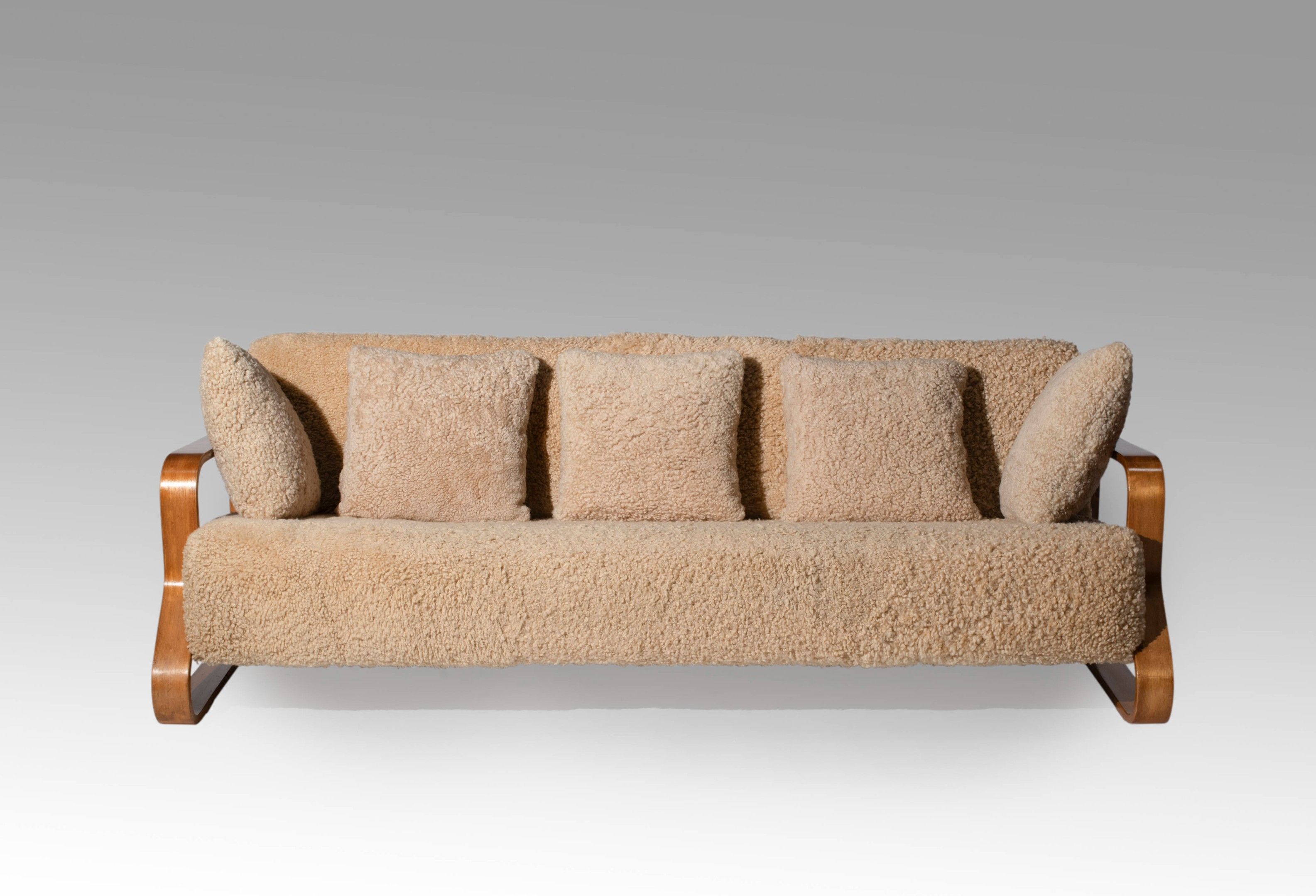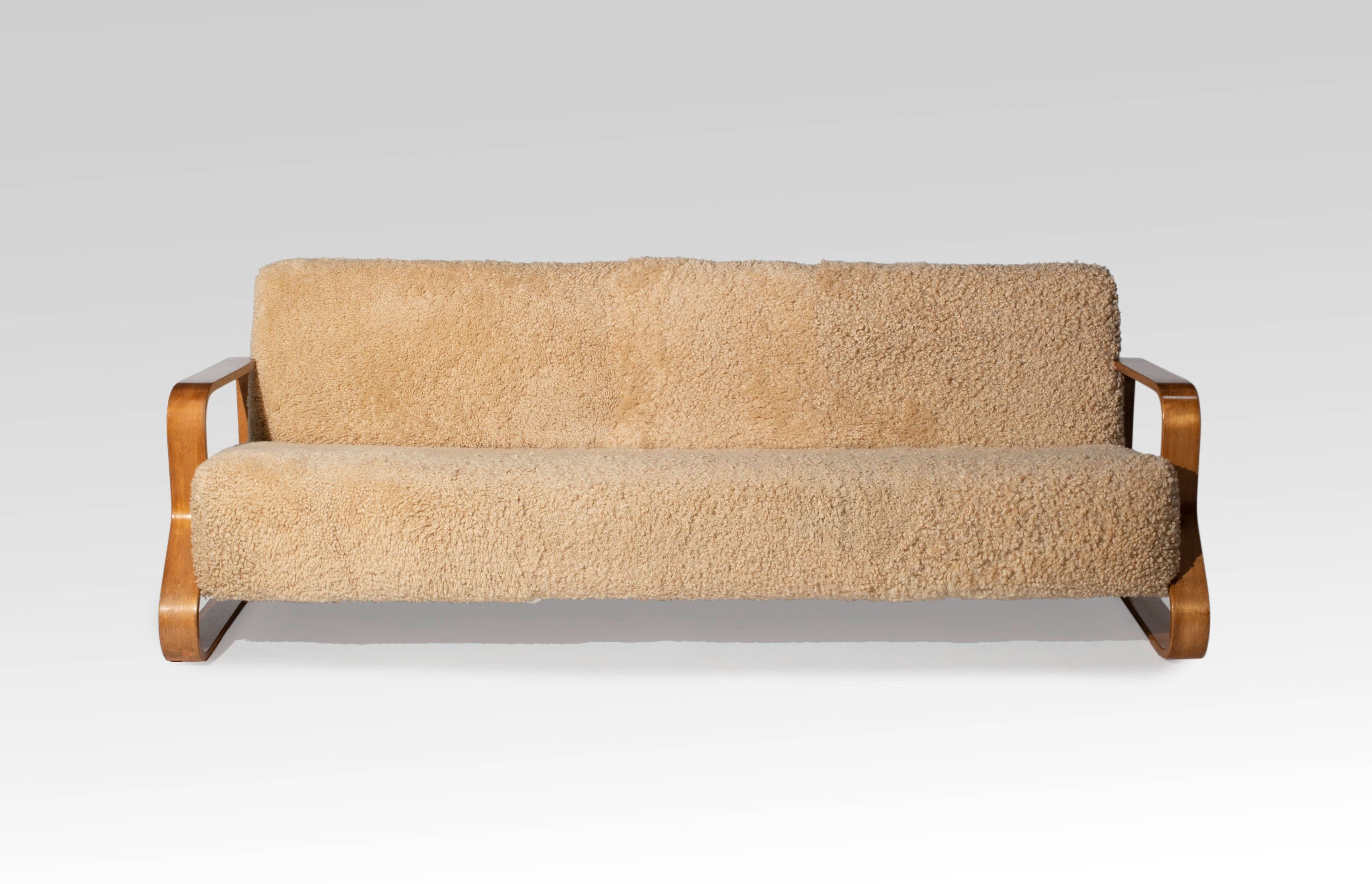 A birch and sheepskin mod. 544 sofa by Alvar Aalto for Artek - circa 1940